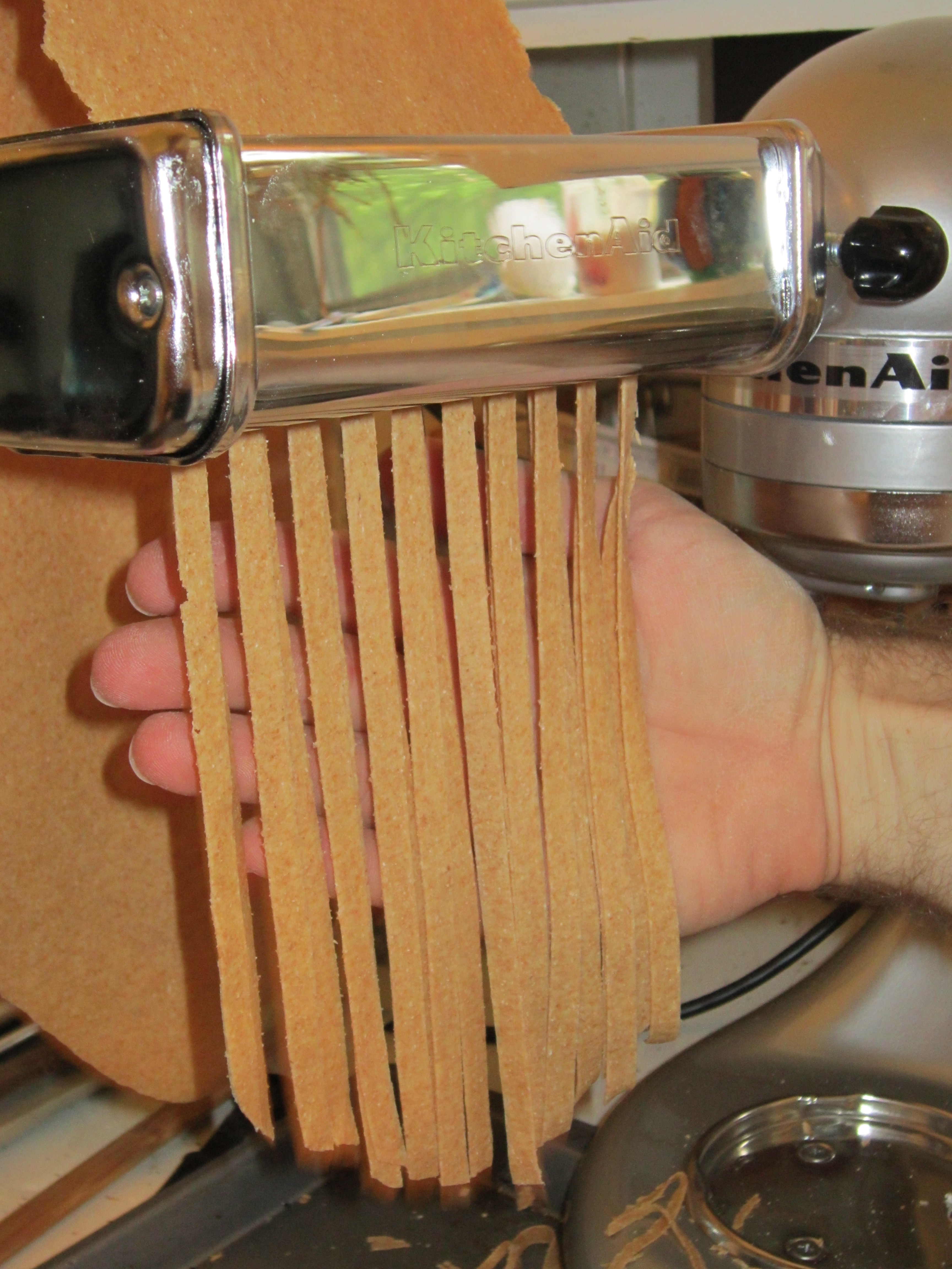 Wonderfully enough, I was also able to utilize a graduation present that reduced the amount of time spent making the whole wheat pasta — a KitchenAid! I guess I should graduate more often! (Thanks, parents!)