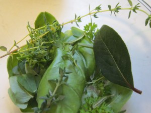 Also, as far as herbs go, try to be creative! I added some of the more Italian-like herbs that I have growing including: thyme, basil, oregano, a bay leaf, and a touch of rosemary. We also had garlic and herb cheese (my favorite!!) from the farmers’ market to top it off.