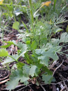 …dill and parsley growing in the understory of the larger tomato trees (gotta love the mini food forests)…