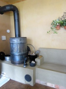 They also had a lot of permaculture concepts incorporated into the interior of their home.  For example, they have a rocket stove that is piped through a cob bench that radiates heat throughout the home during the winter.