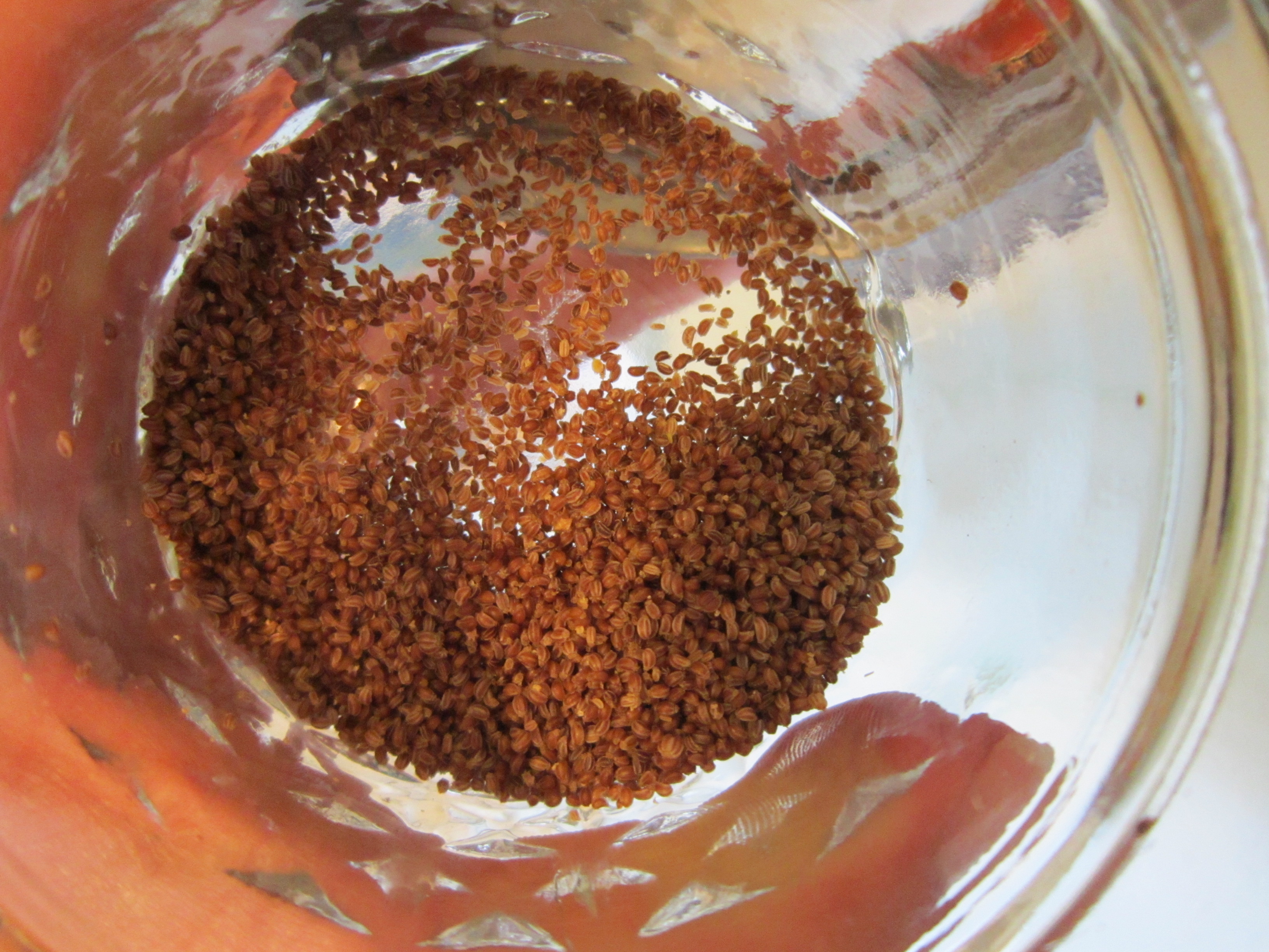 There are lots of seeds to collect. Although the celery I planted never reached a size I wanted to harvest last year, I left the plant alone and it made a lot of seeds to be gathered this year (it’s a biennial plant). They smell delicious!