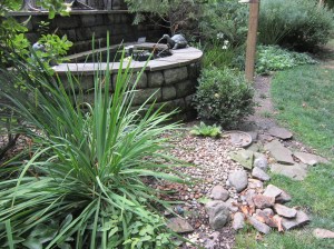 “We decided to start first with the back living area so a bluestone pathway off the drive was conceived to enter the backyard. Now when you approach, there is the idea of being drawn into and welcomed into our backyard. The patio was created at the base of the sun room for outdoor cooking, eating, reading, socializing, or just relaxing.