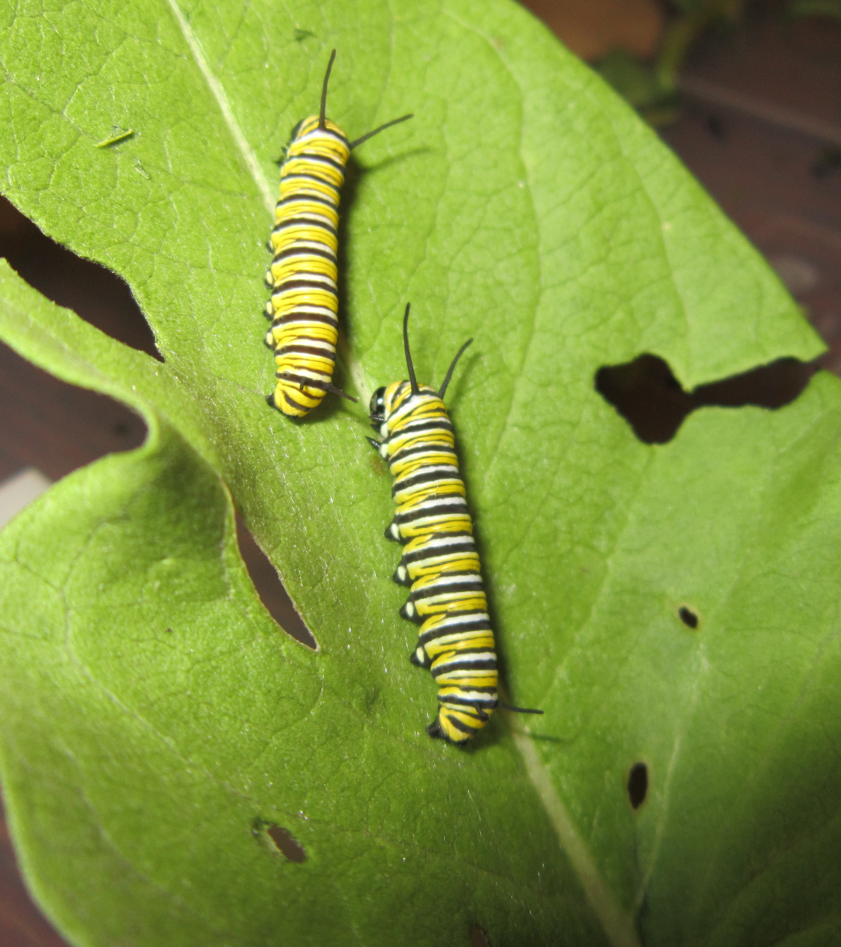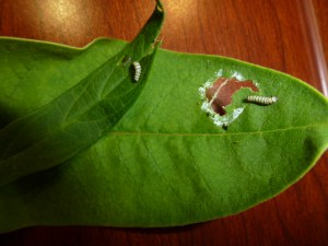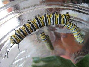 We quickly provided them with the only plant monarch larvae eat, milkweed (although there are quite a few varieties!).  Milkweed contains a toxic compound that makes these caterpillars and butterflies poisonous to other animals.  A bird need only eat one of these bright orange butterflies to know it should never do so again!