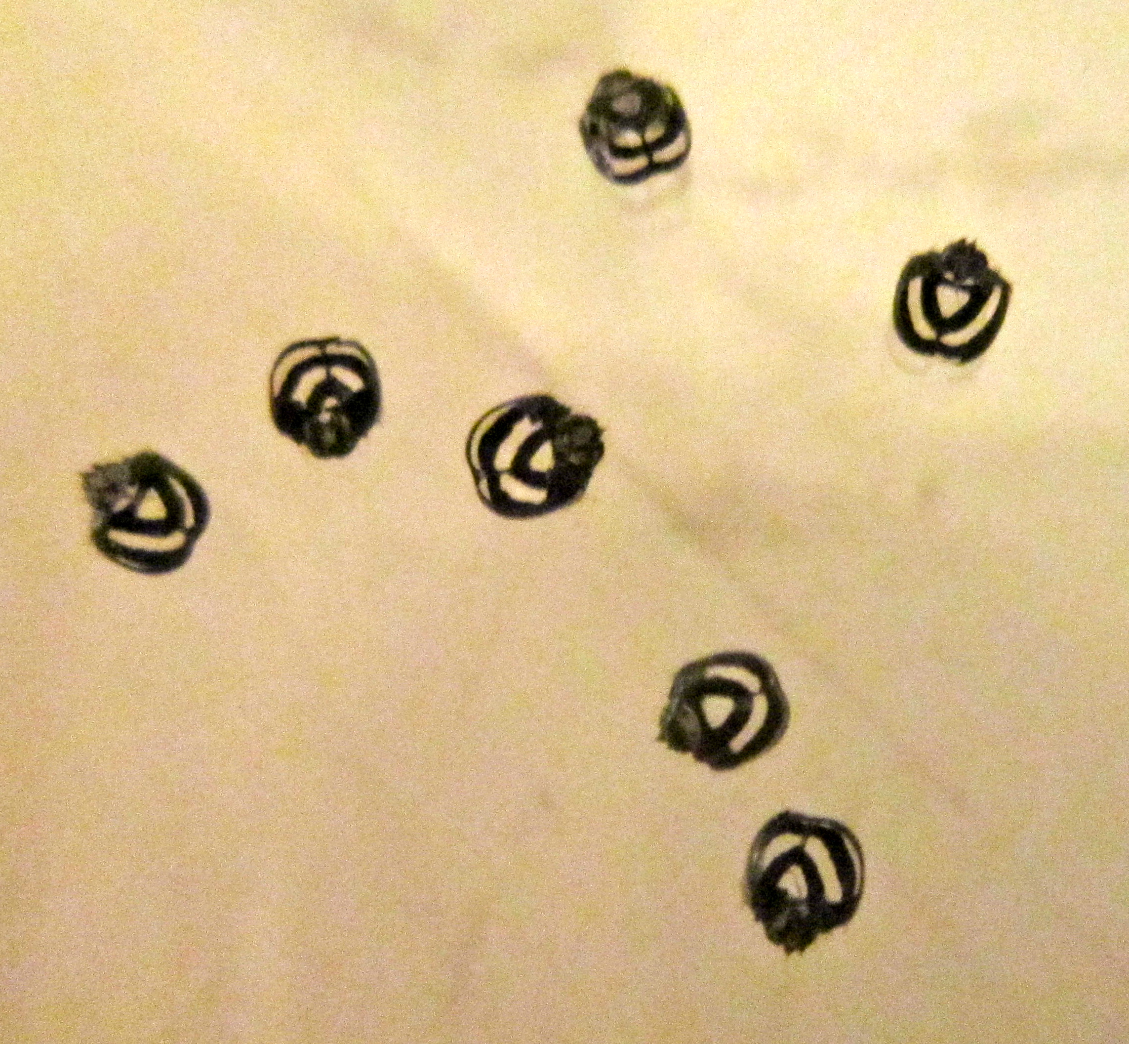 In addition to their obvious changes in size, sometimes when we cleaned out the containers we found evidence that they had shed their last skin.  These are all face caps from their previous bodies.