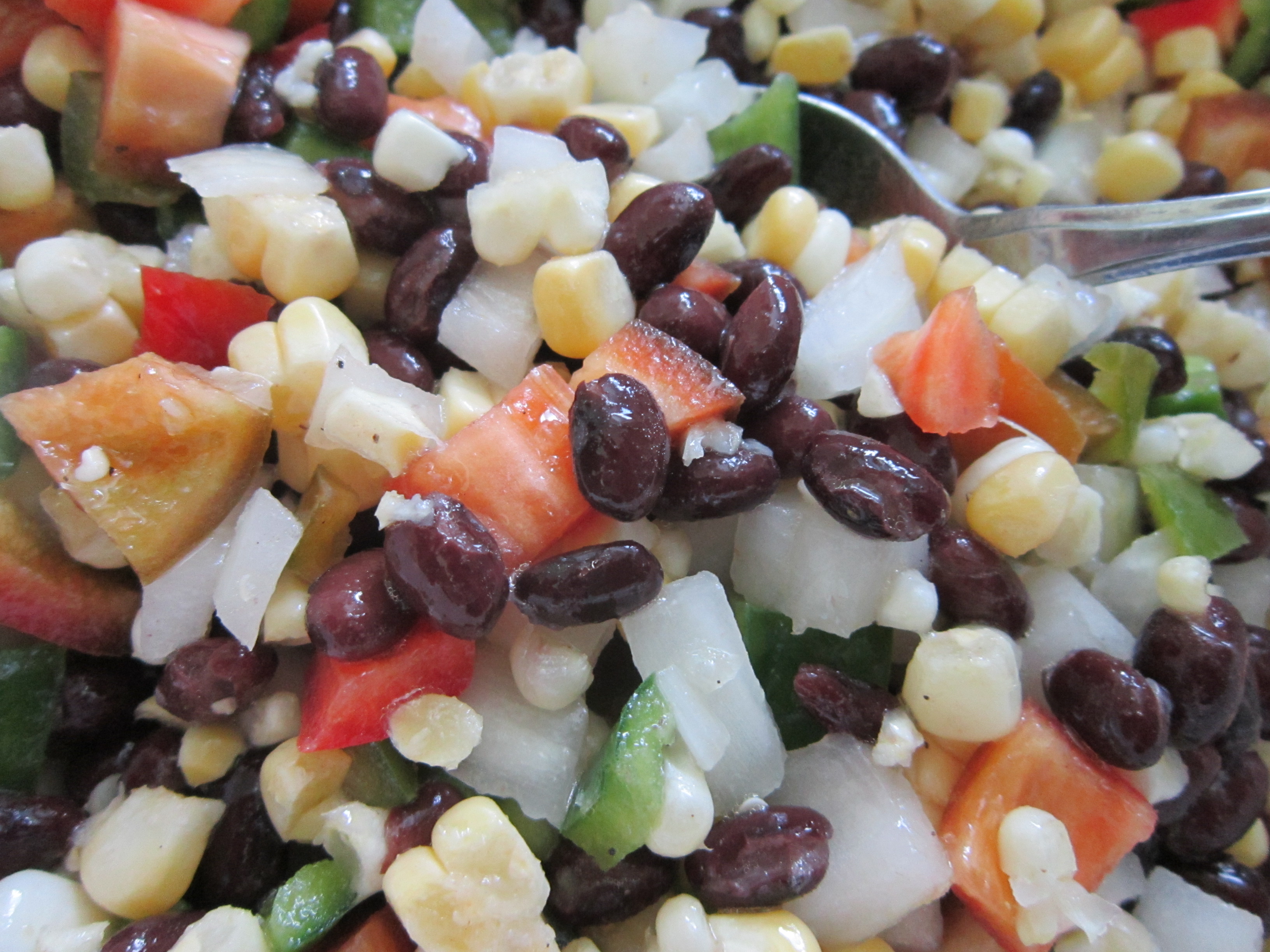 • Prepare vegetables and add to a large bowl along with the black beans.