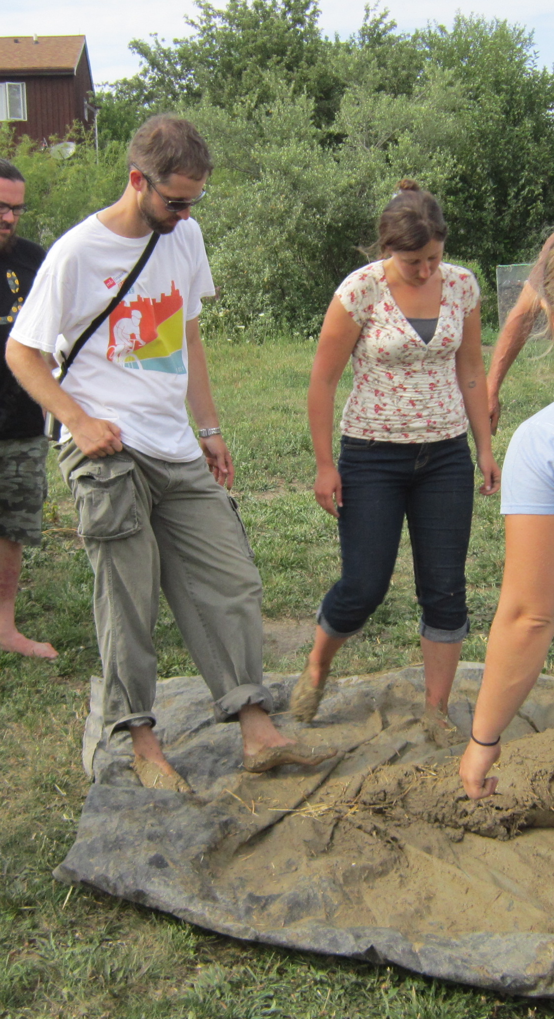 At my permaculture course, I had some practice with making cob — a mixture of clay, straw, and water that can be used as a building material. Houses made out of cob are surprisingly resilient and many have artistic touches that can only be found on a home that has been sculpted by hand.