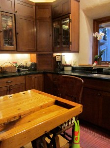 Reused materials were incorporated where possible throughout the house. One highlight was a 100-year old workbench that serves as a kitchen counter.
