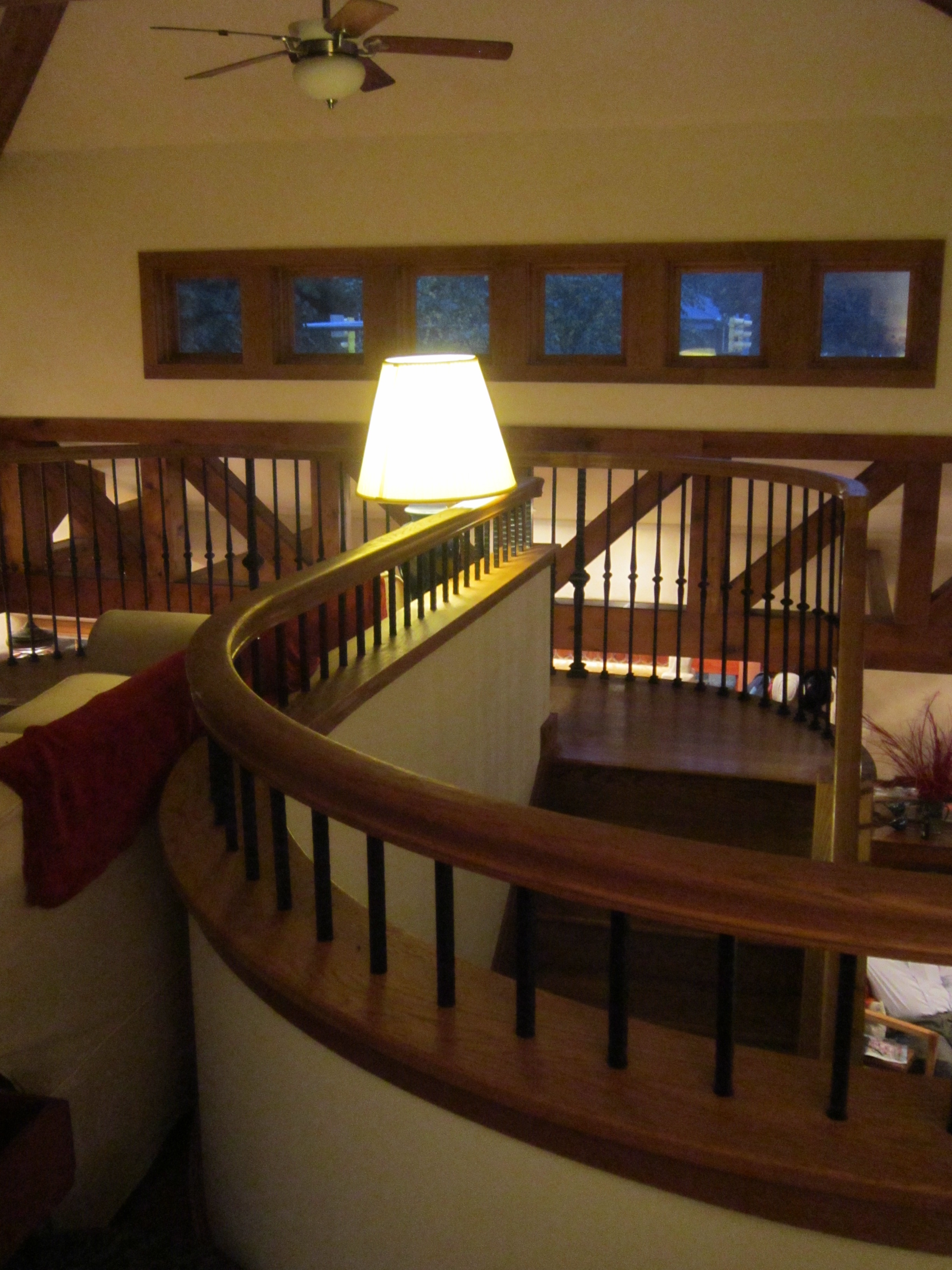 Wow, how beautiful! The curved bannister is amazing. And the “truth window” is awesome as well!