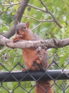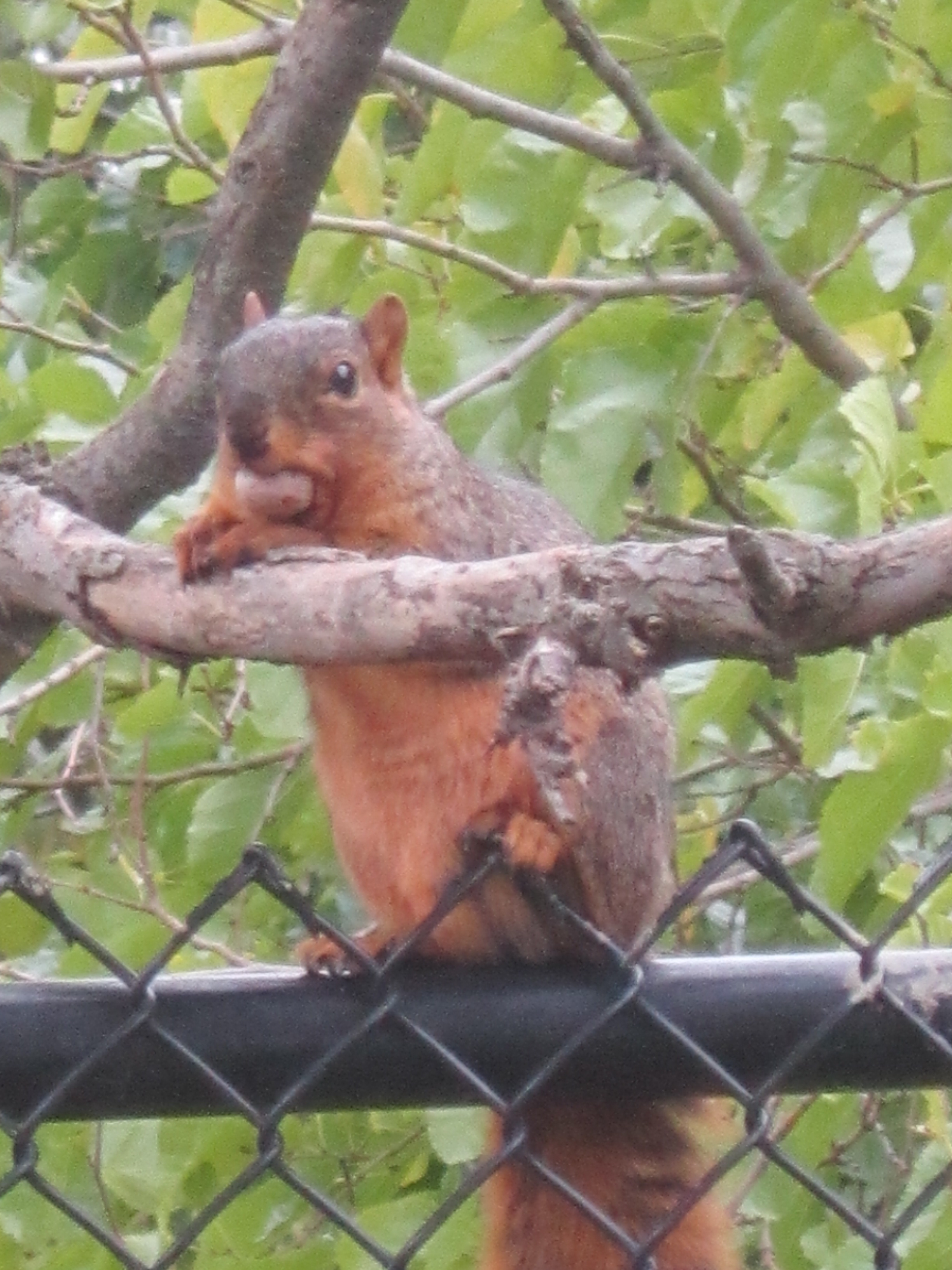 In closing, I must share this squirrel photo. I came upon this little guy seemingly in the midst of deep meditation — foot up, acorn in mouth, not moving at all. I got very close to him before he finally scampered away. Funny!
