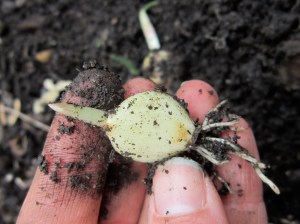 For example, it’s the perfect time for planting garlic to be harvested next summer. Isn’t it beautiful that each little clove will turn into its own bulb of delicious goodness?! The ones I’m planting below I actually found clumped together as a whole bulb…not sure how I left that in the garden, but I just carefully separated each little section and planted them to grow on their own.
