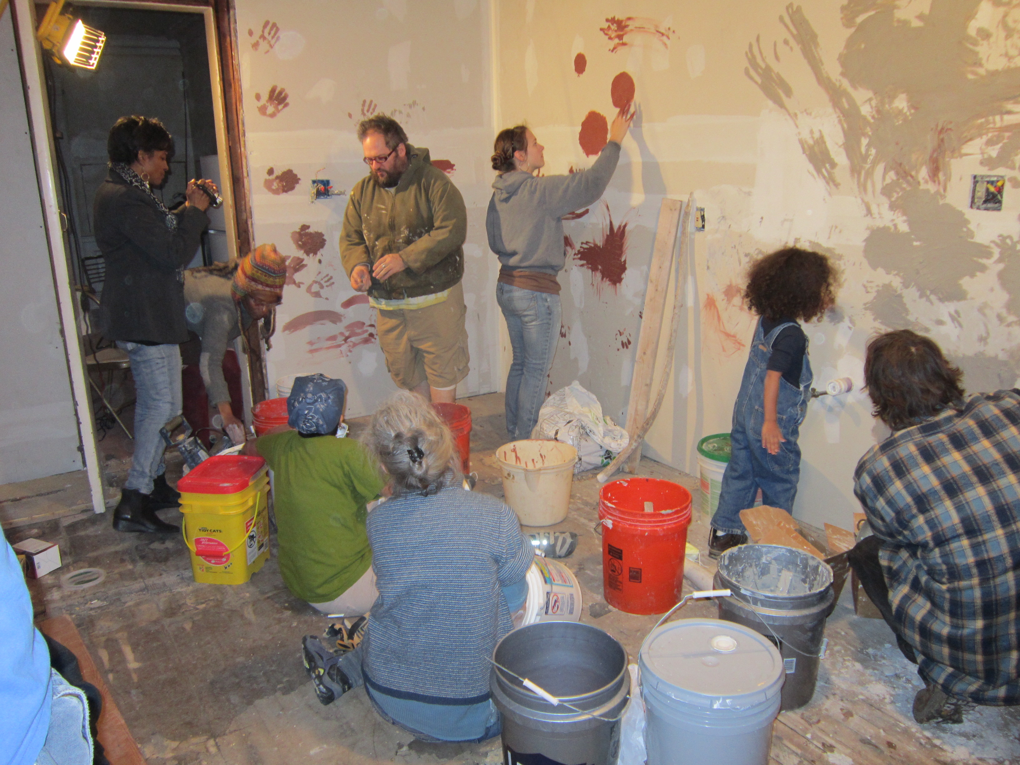 Yesterday, I had another opportunity to be in a group of peraculture-type people as we met to play around with Earth-based painting techniques. We were working in a gorgeous old apartment building built in the early 1900s. Through years of wear and tear, some of the units are in better shape than others, and we were practicing in one that is being completely redone.