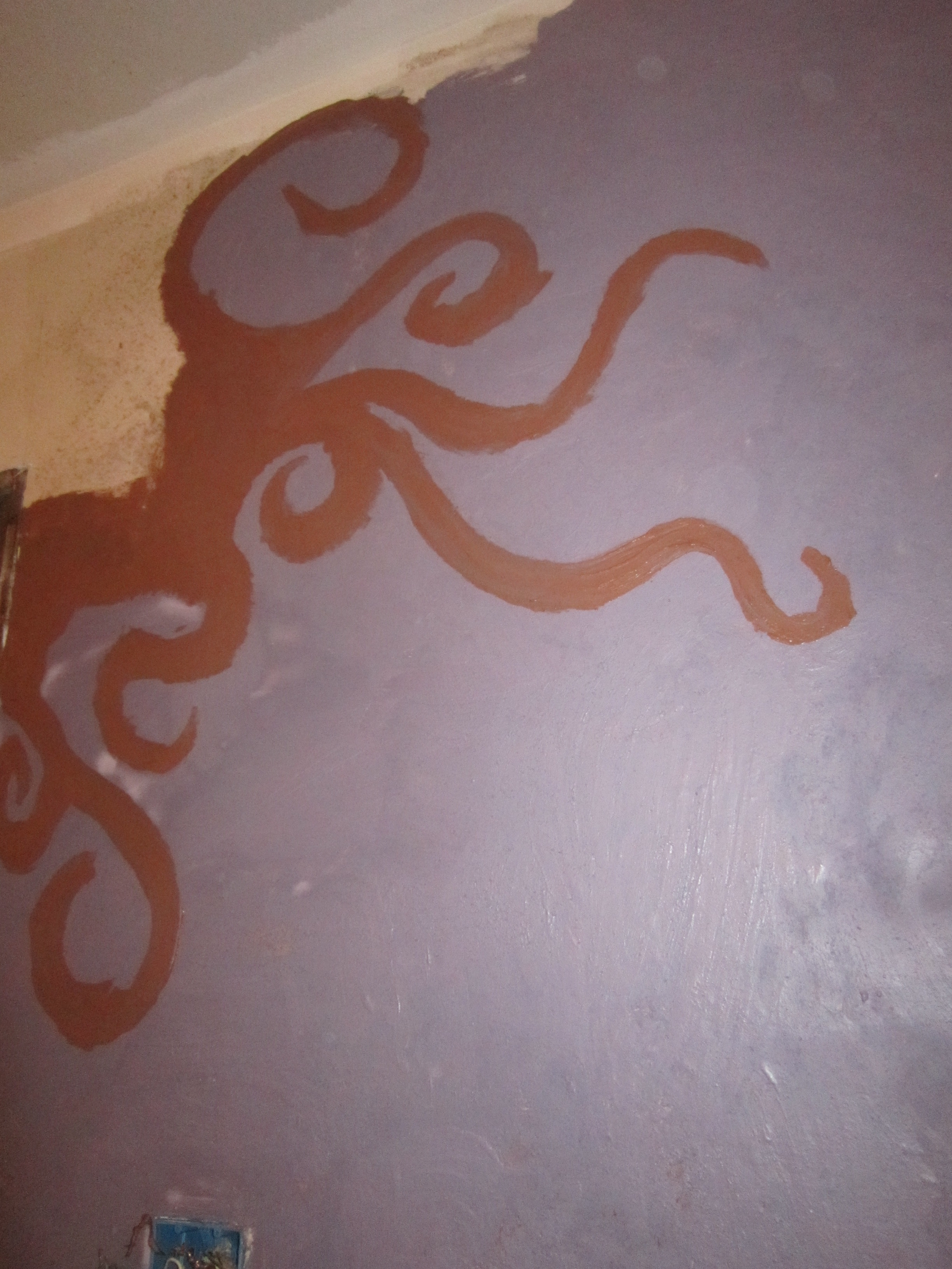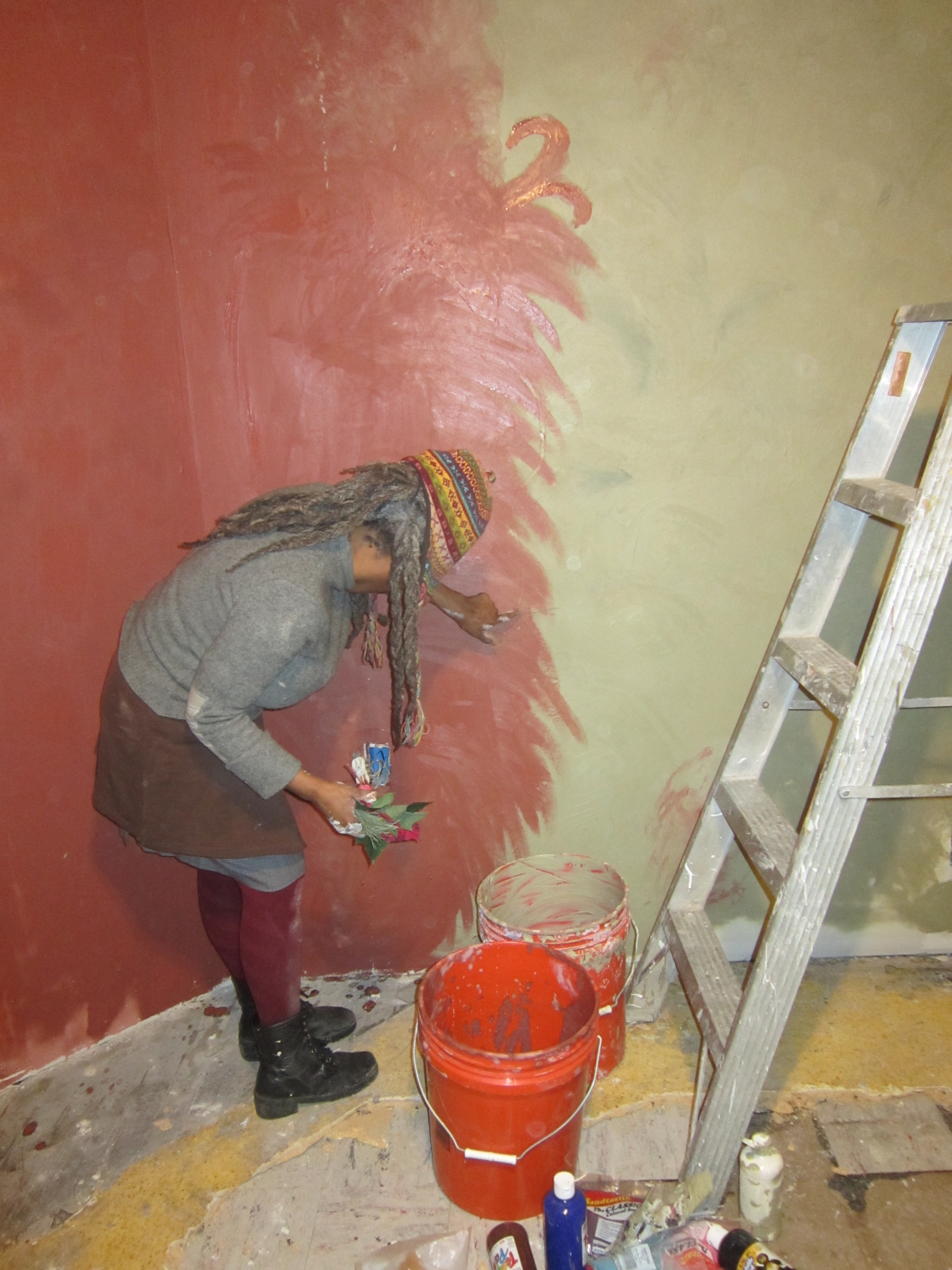 And then we got busy! Although the purpose of this space is not entirely certain at this point, it’s likely that it will be used as a gathering place for artists and other creative individuals, so we were really able to experiment with our painting. Obviously, this is not a necessity with Earth-based paints and they can be used in the most conservative of homes, too!