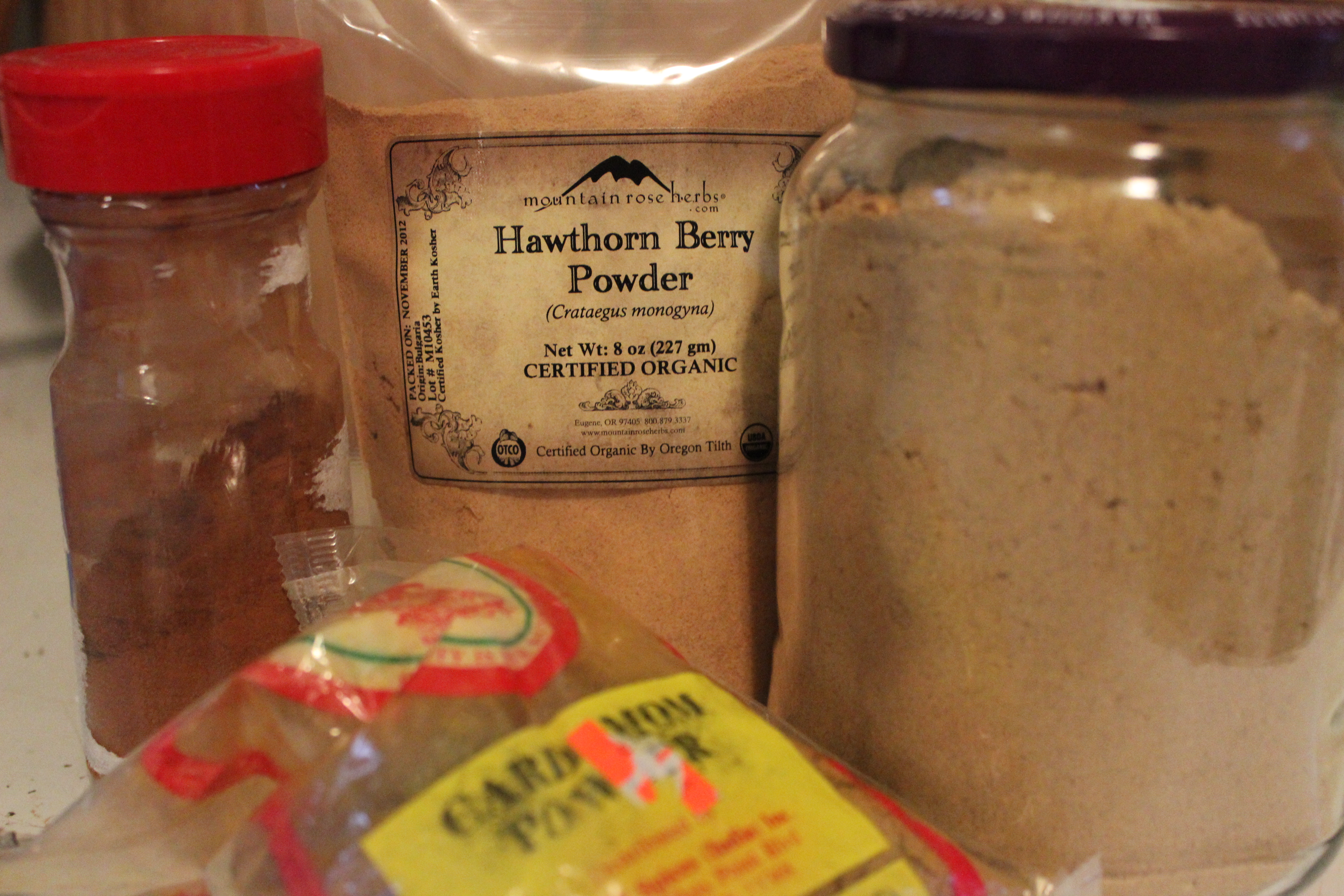 Note: I am not suggesting that this powder will treat or cure any ailments.  If you have any heart conditions or concerns, check with a medical doctor before trying herbal sprinkles.  Also, thanks go to Rosemary Gladstar for inspiration with this mix.