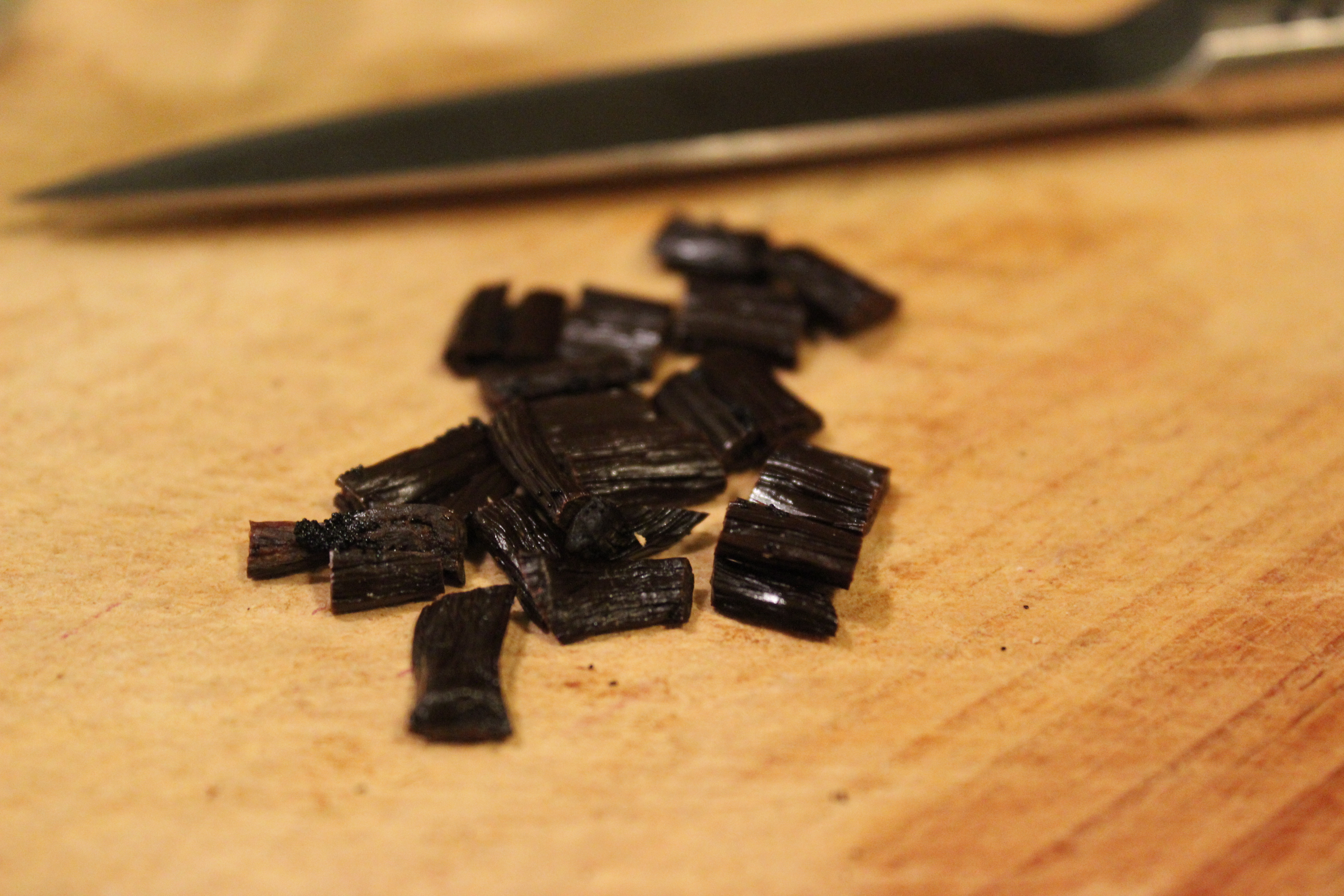 Next, I cut the remainder of the pod into small pieces so that there is more surface area available for infusing into the extract.