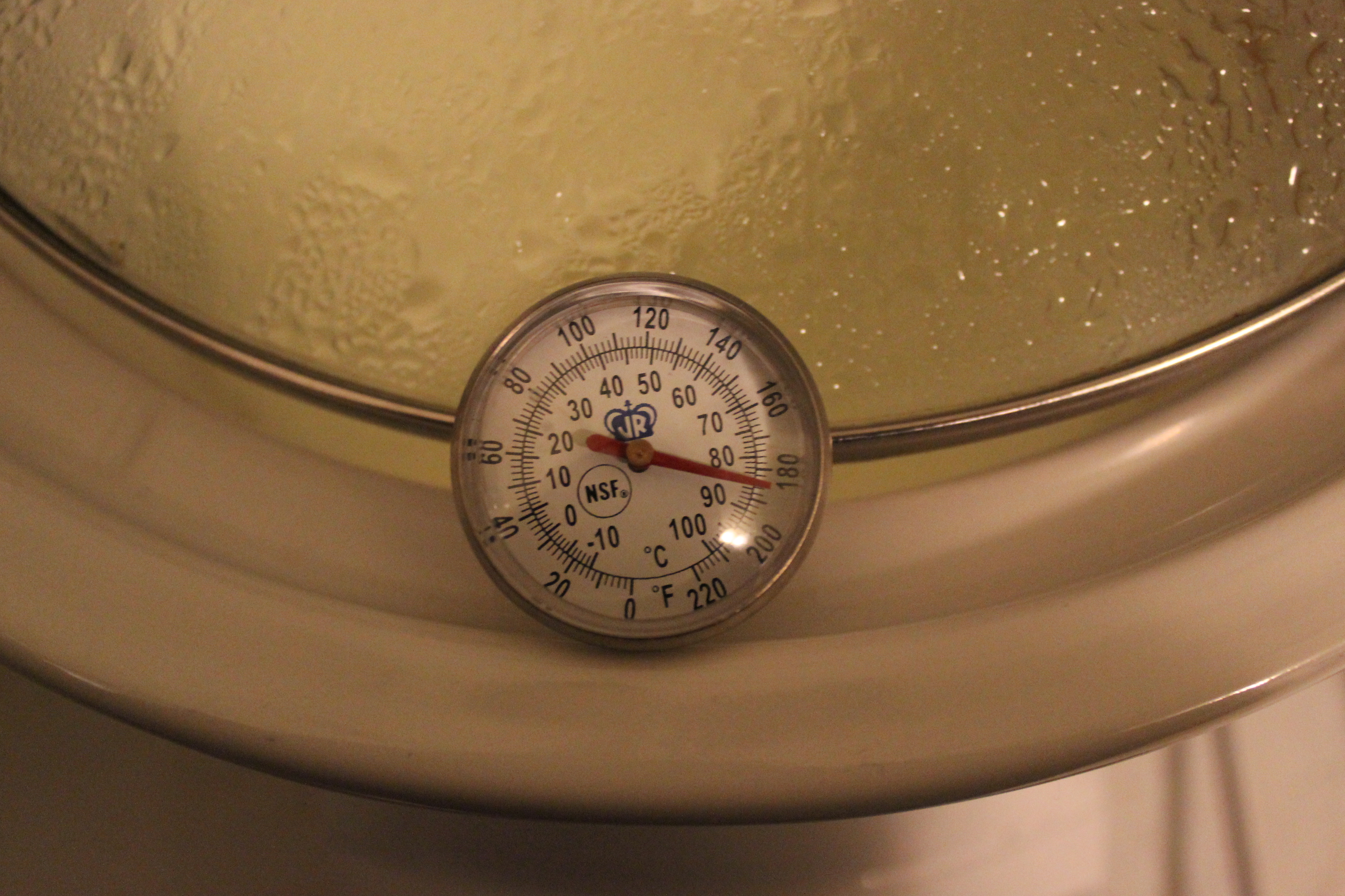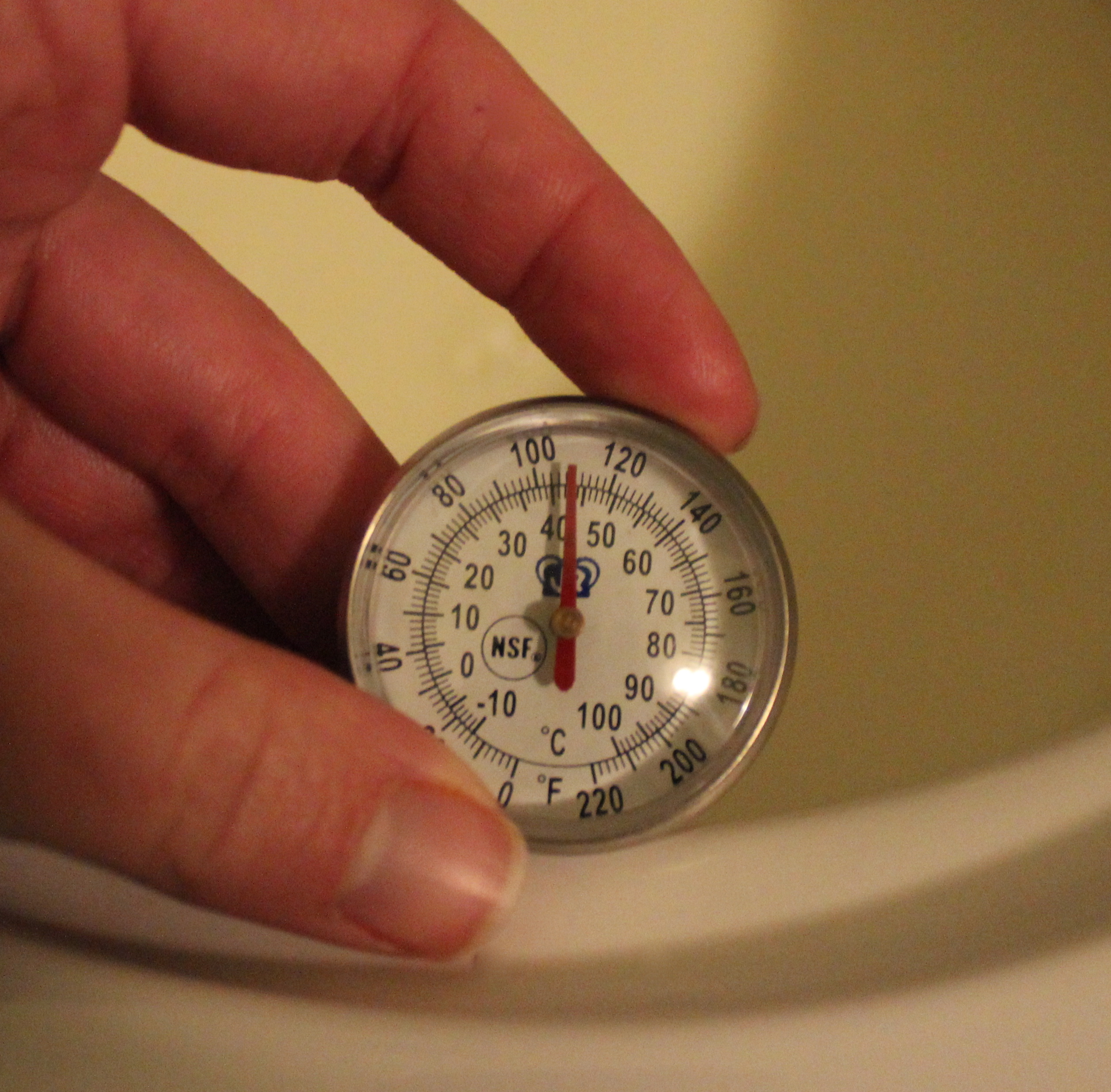 2) Once the milk has reached 180 degrees, turn off the heat and remove the lid.  Let milk cool to 110-120 degrees F.