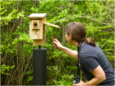 Once you become certified, you’ll need to start searching for nests – in bird boxes, trees, shrubs, and anywhere else bird-friendly near your home.  The nest should then be visited every 3-4 days so that you can keep an accurate record of the number of eggs in the nest, when they hatch, and how many of the nestlings fledge.  You can then report these data on the NestWatch website.