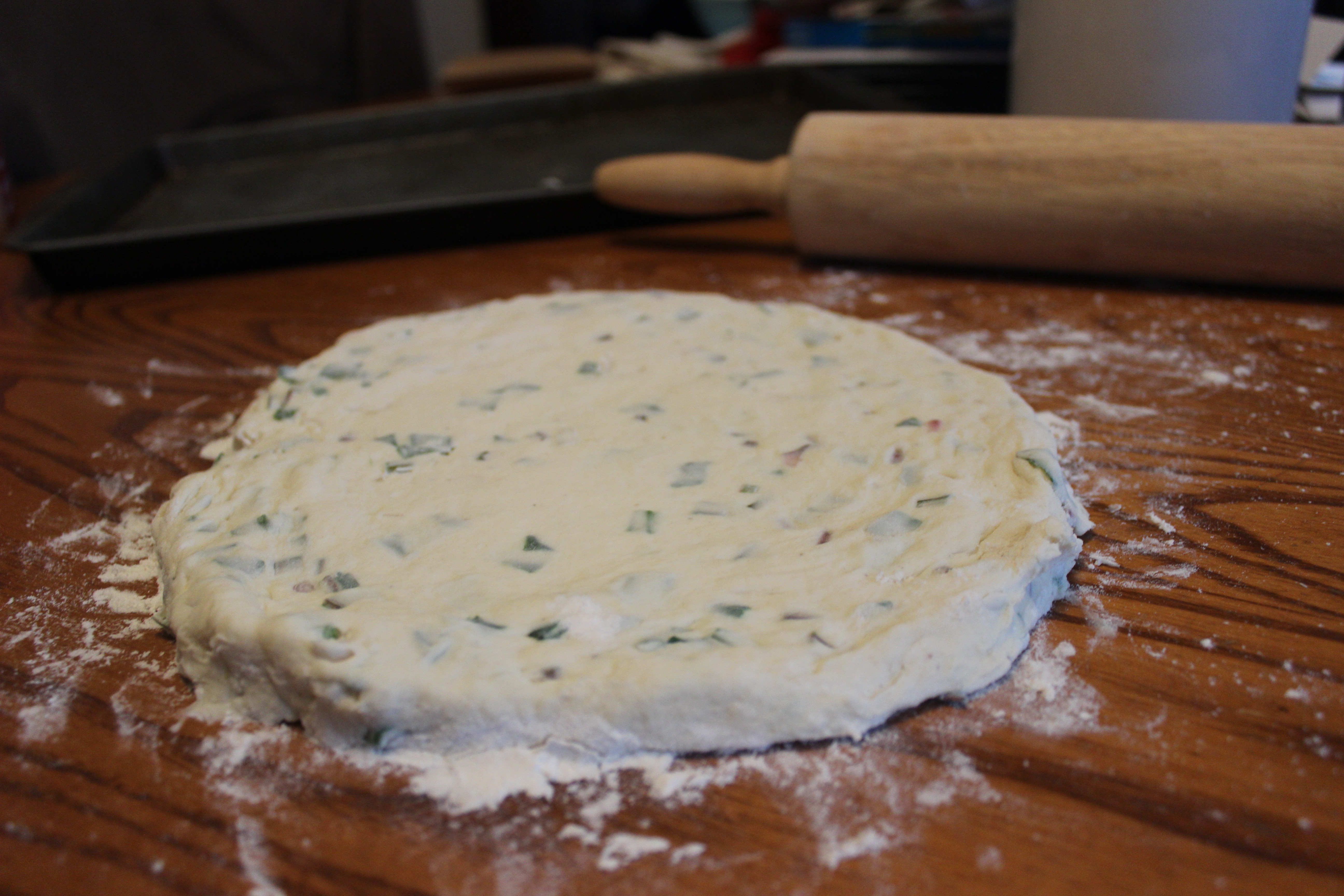 Add buttermilk and ramps to the flour and mix together until a dough forms.