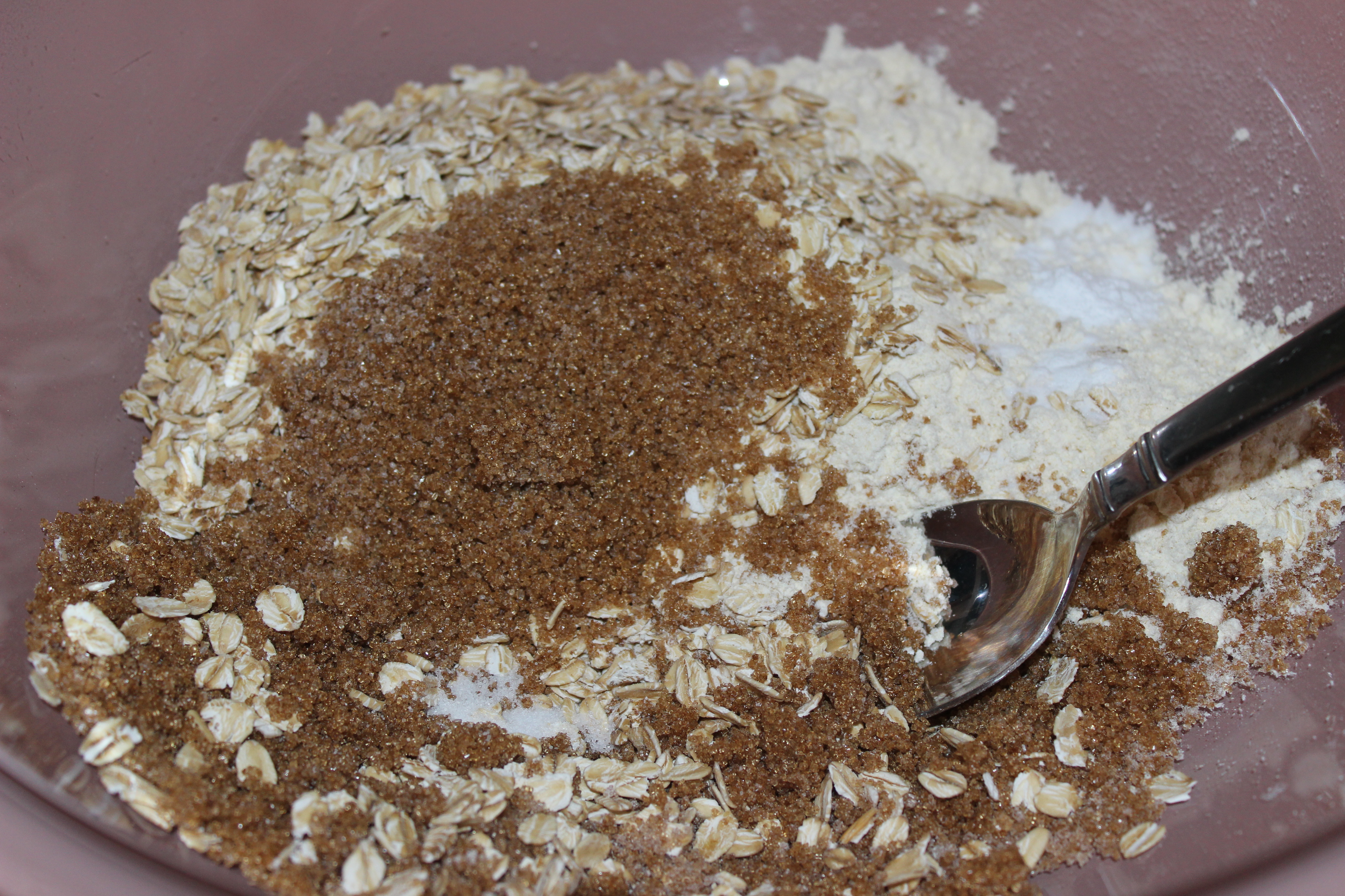 Mix the flour, oats, brown sugar, baking soda, and salt in a large bowl.