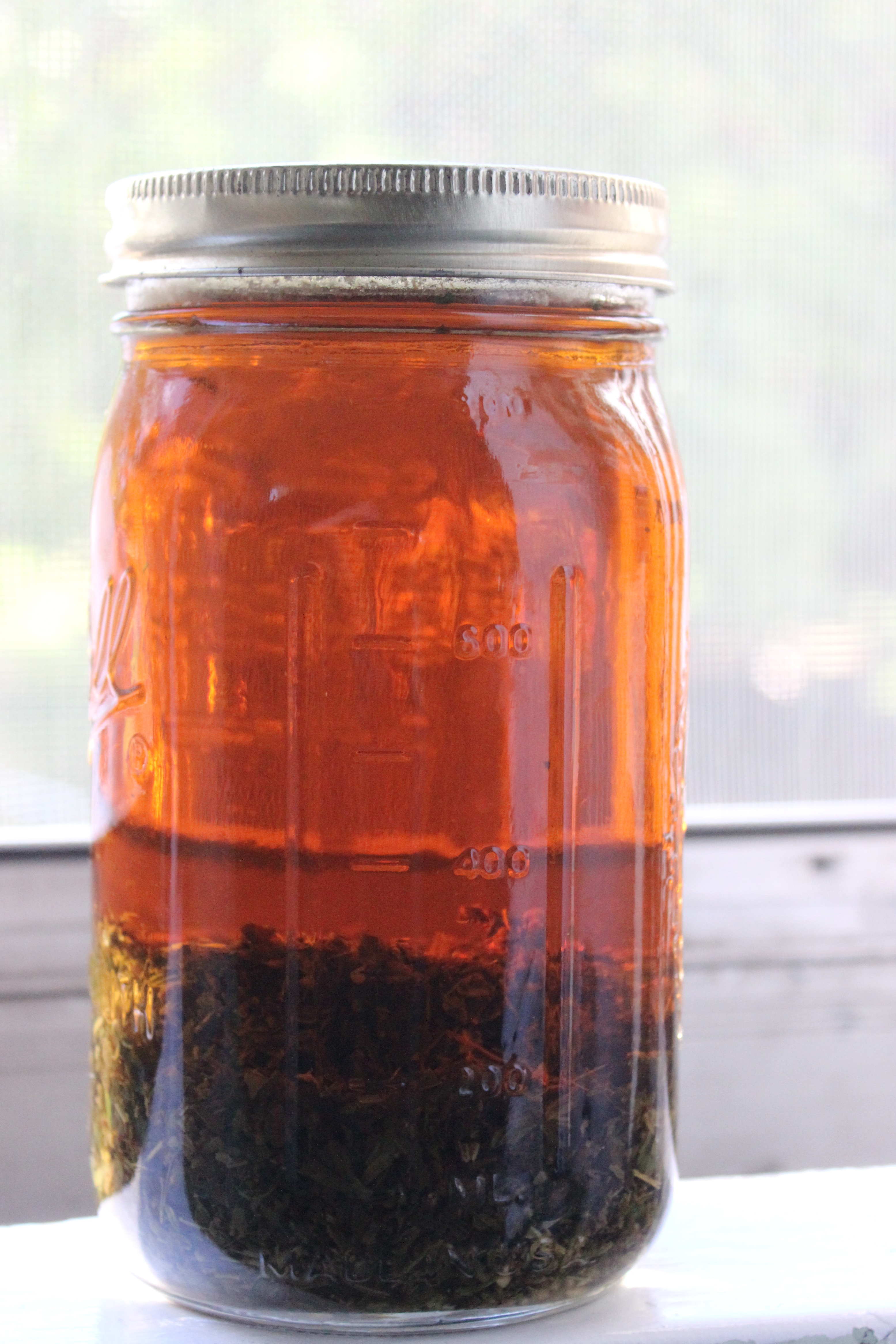For an infusion, place 7 – 8 Tbs. of the herb mix into the bottom of a quart jar. Cover with boiling water and allow to steep for 4-8 hours (I let it sit on the counter overnight). This brew can then be reheated or enjoyed as an iced tea. Just make sure to drink it within a couple of days.