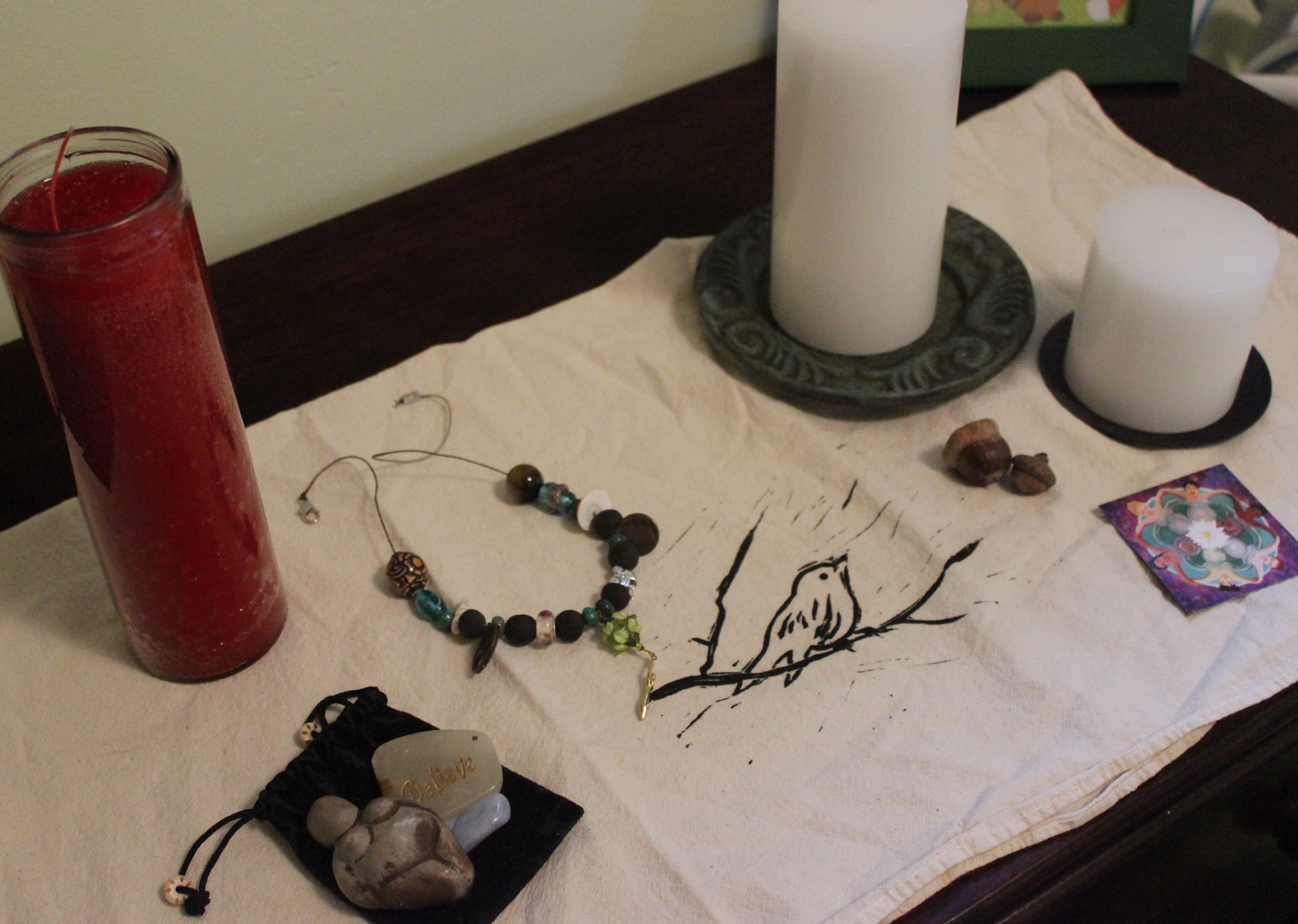 There are also rose hip beads made by my great aunts, beads from a baby bracelet of a family friend who has since passed on, and shells from the beaches of the Pacific Ocean.  It truly is an eclectic and wonderful treasure that I hope to keep near me during my birthing time and beyond.  For now, the necklace is resting on the birth alter I’m creating as yet another tool to help keep me focused and confident during the birth day!