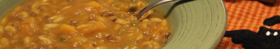 It definitely means that it is weather for soup! Add to that my success with a loaf of sourdough (after several ended up out in the compost for various reasons…), and it was a perfect night to try a pumpkin and lentil soup!