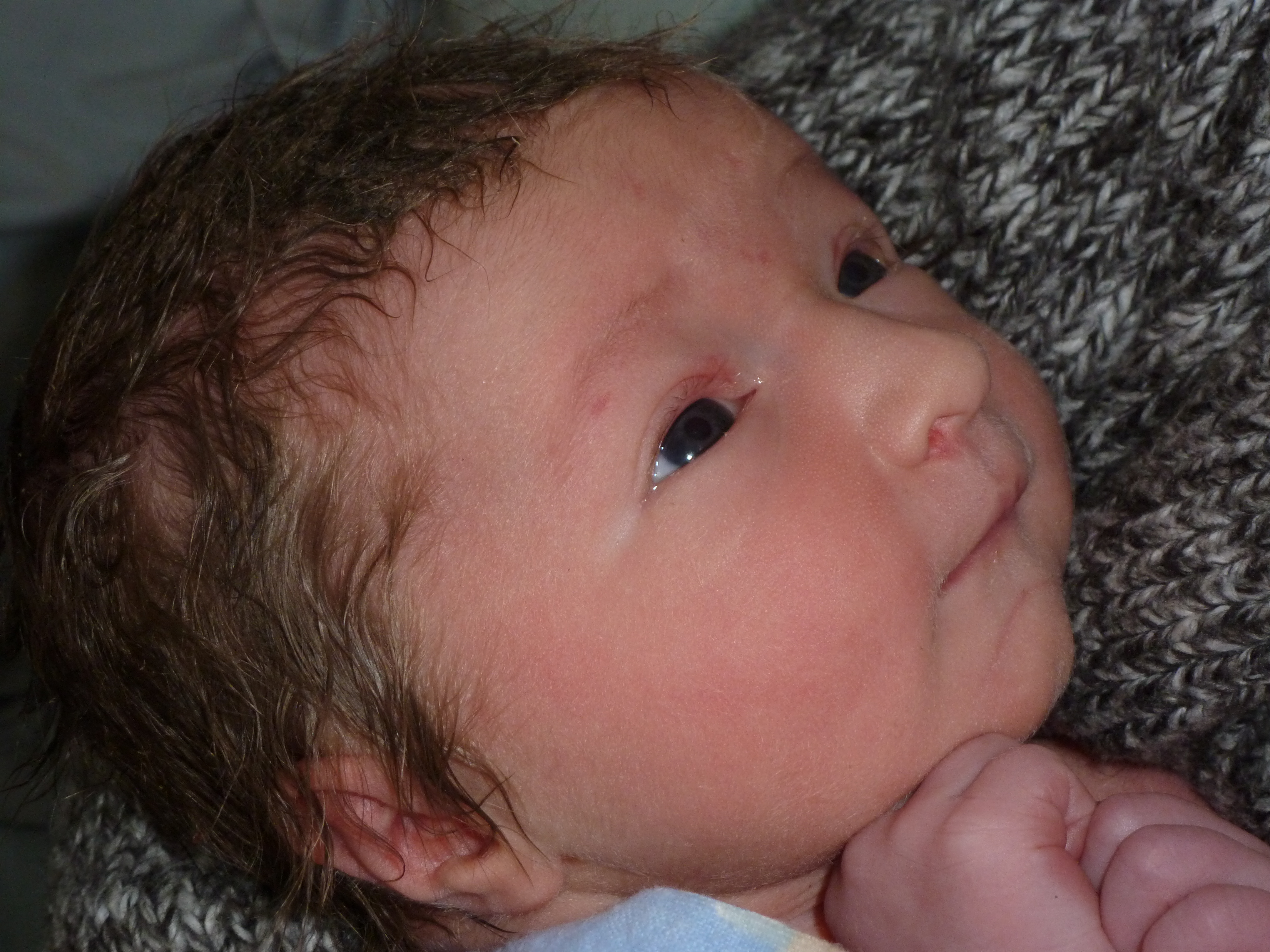 Finally we reached a point where Pam and Michael said they could see the top of her head.  She was coming closer!  With each push, there was a little more of her visible, but then she would go back in.  We soon learned that she had an impressive amount of hair!