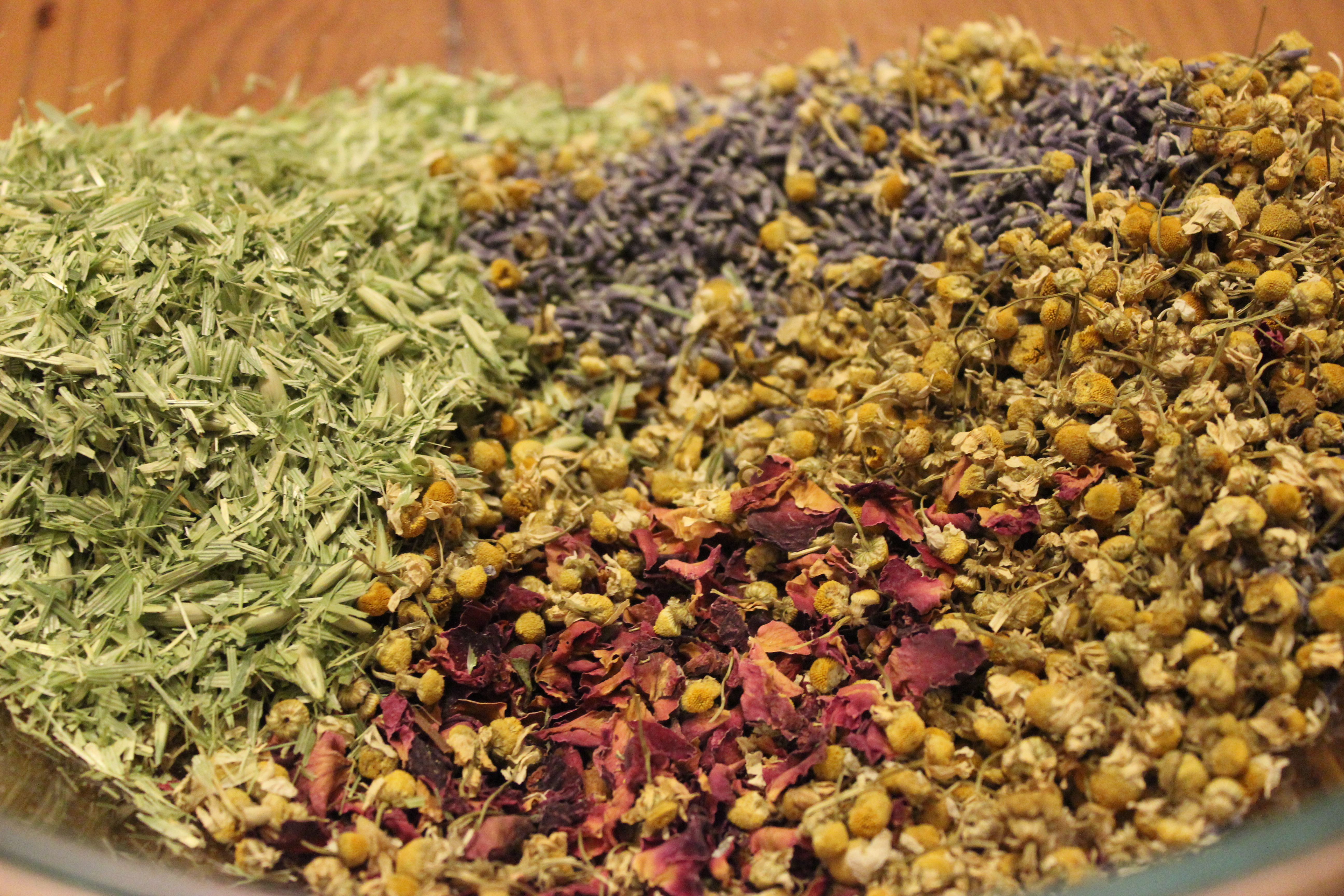 For my current blend, I combined the calming and relaxing scents of chamomile, lavender, and roses with the cleansing and nourishing power of oats.