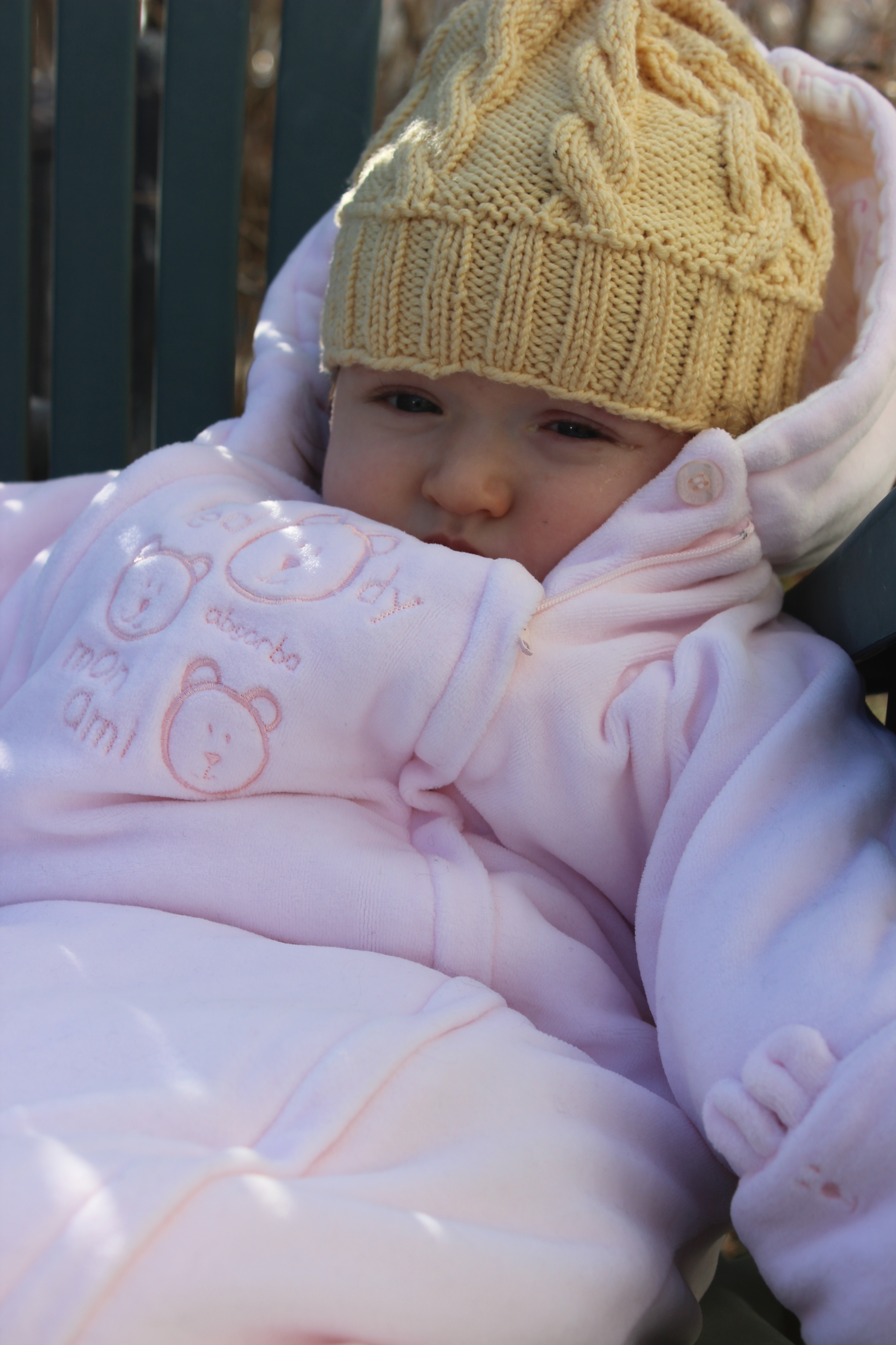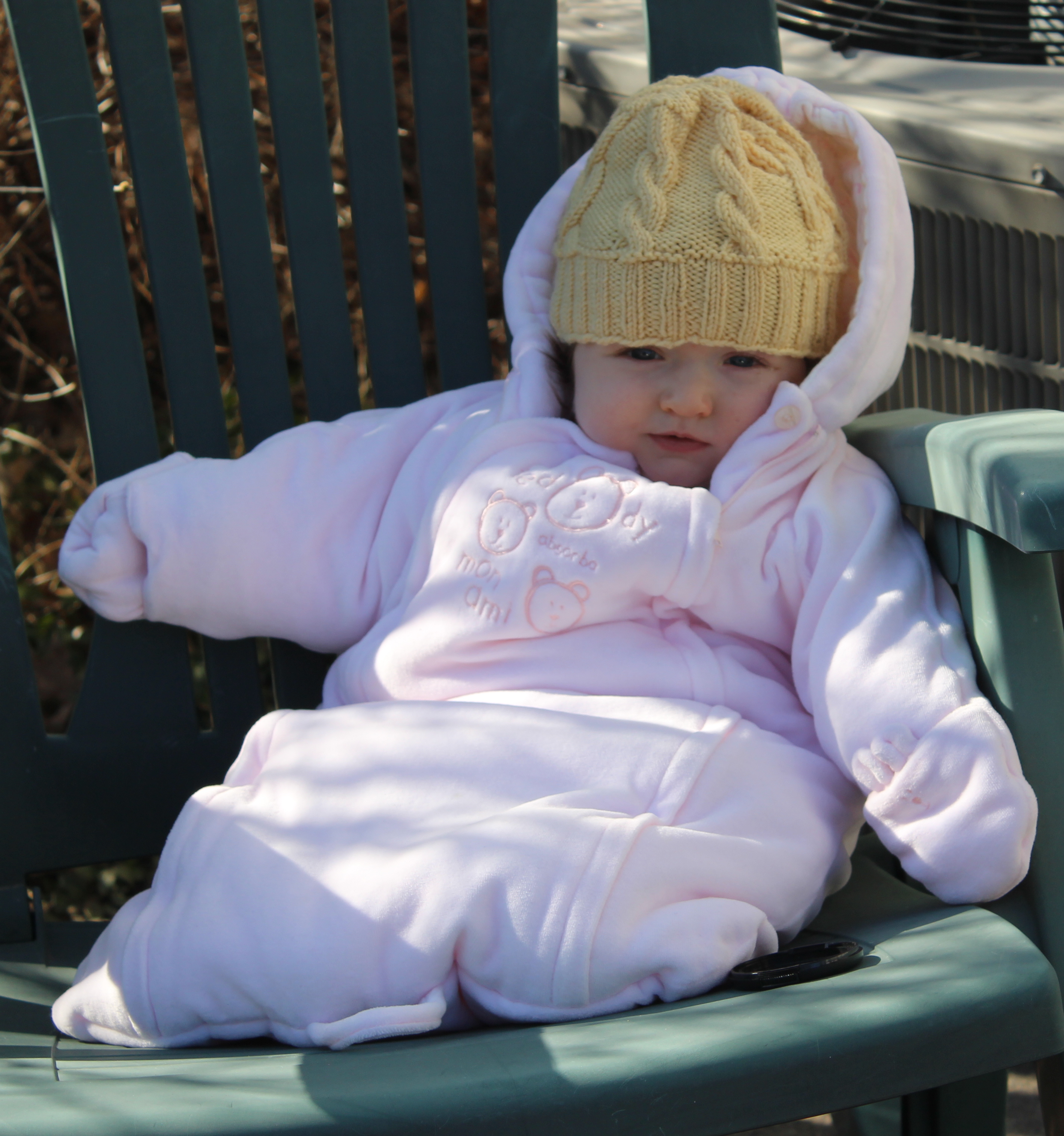 1. I love your little signs that spring is on its way! And it is wonderful for Cora to have these photos of her first spring, nice and snug in her jumpsuit. Believe it or not, we do have signs of spring-lots of birds singing, color popping out on our Indian Hawthorn, blossoms on our citrus trees and blueberry bushes and the flowering trees in the neighborhood–and lots of bees!