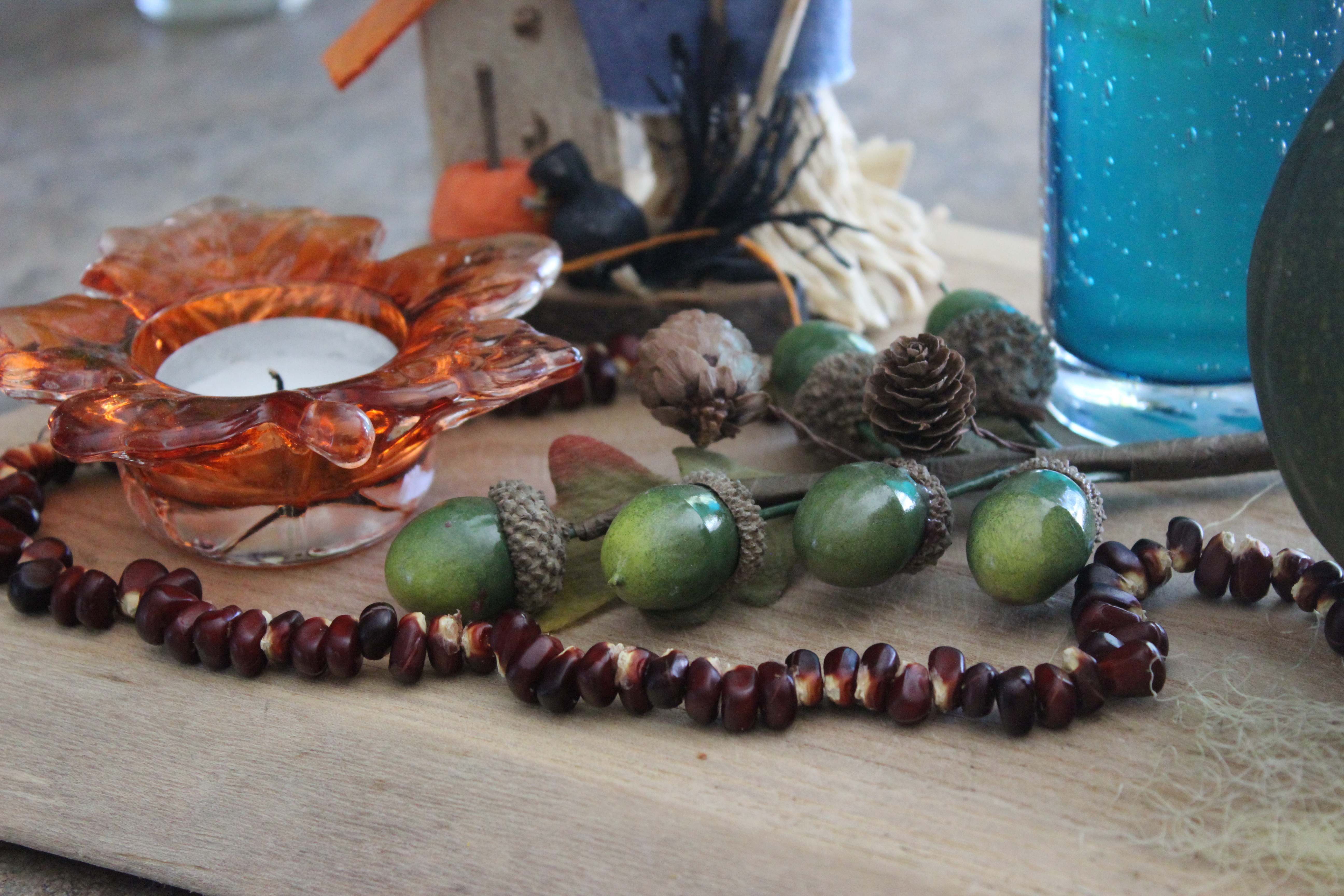 It turns out that there are a lot of kernels on a single cob of corn. I ended up making a necklace for me, Baby LF, and several garlands that I have strung around the house and the Fall altar. These strands add a lovely touch of autumn around the home and keep me feeling connected to the Earth and the season.