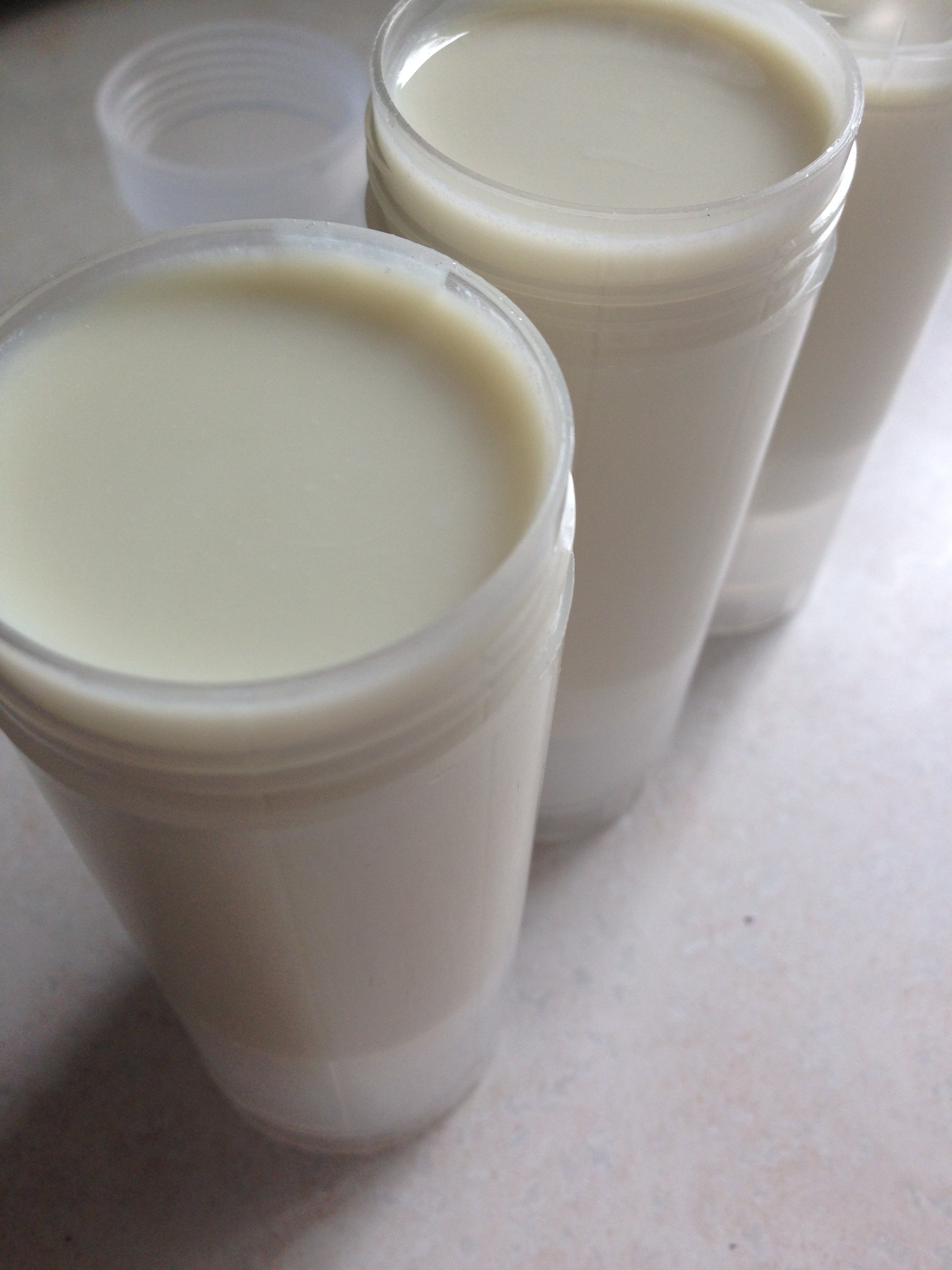 sun stickThis recipe makes about 6 oz of sun stick.  I put it into these push up deodorant tubes.  You’ll be able to fill about three with this recipe.