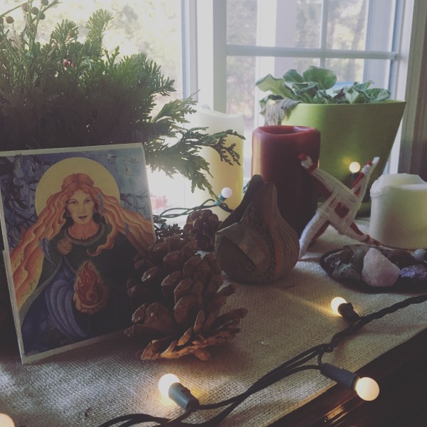 (The photo of Brigid on my altar is by Joanna Powell Colbert)