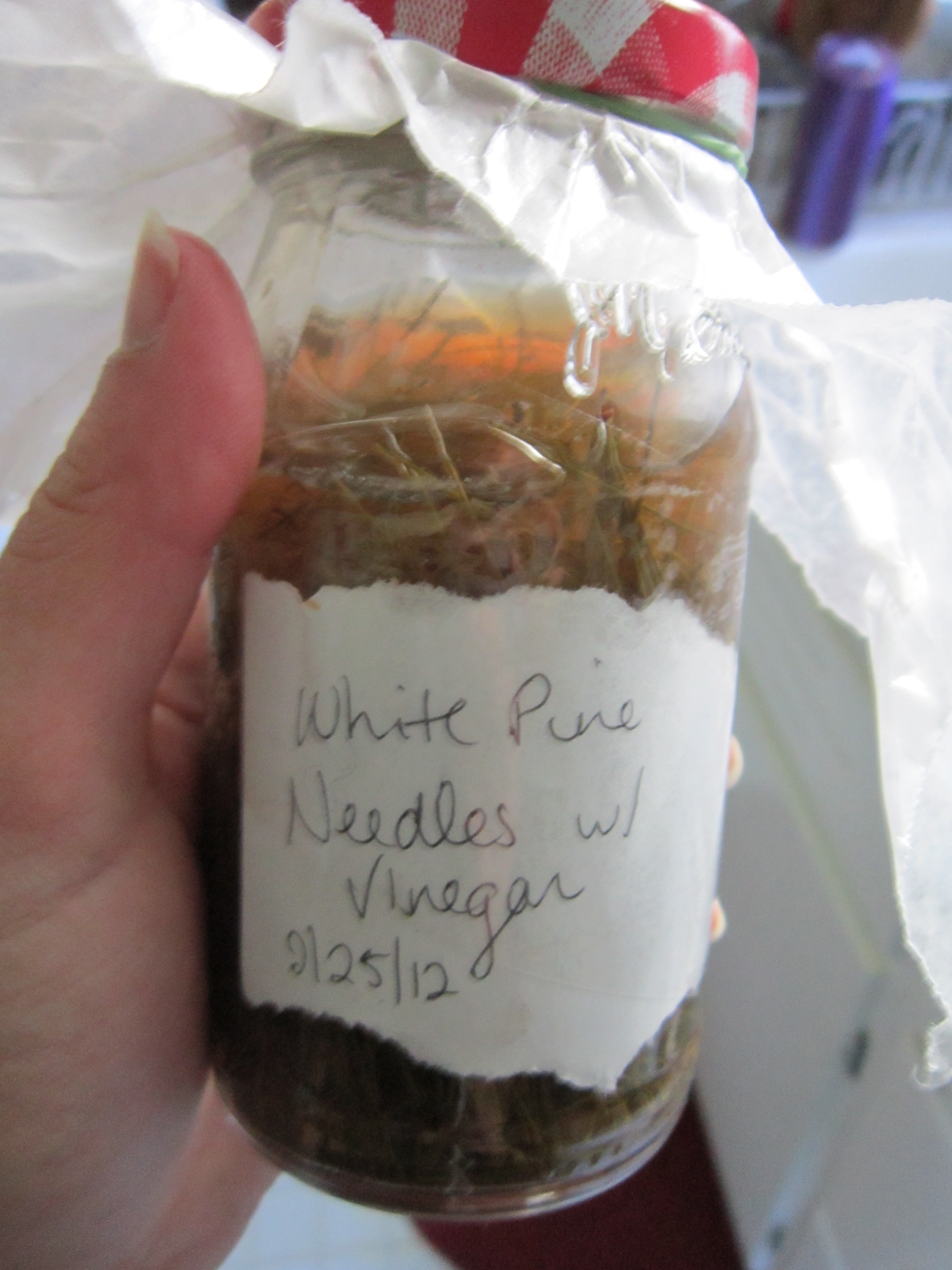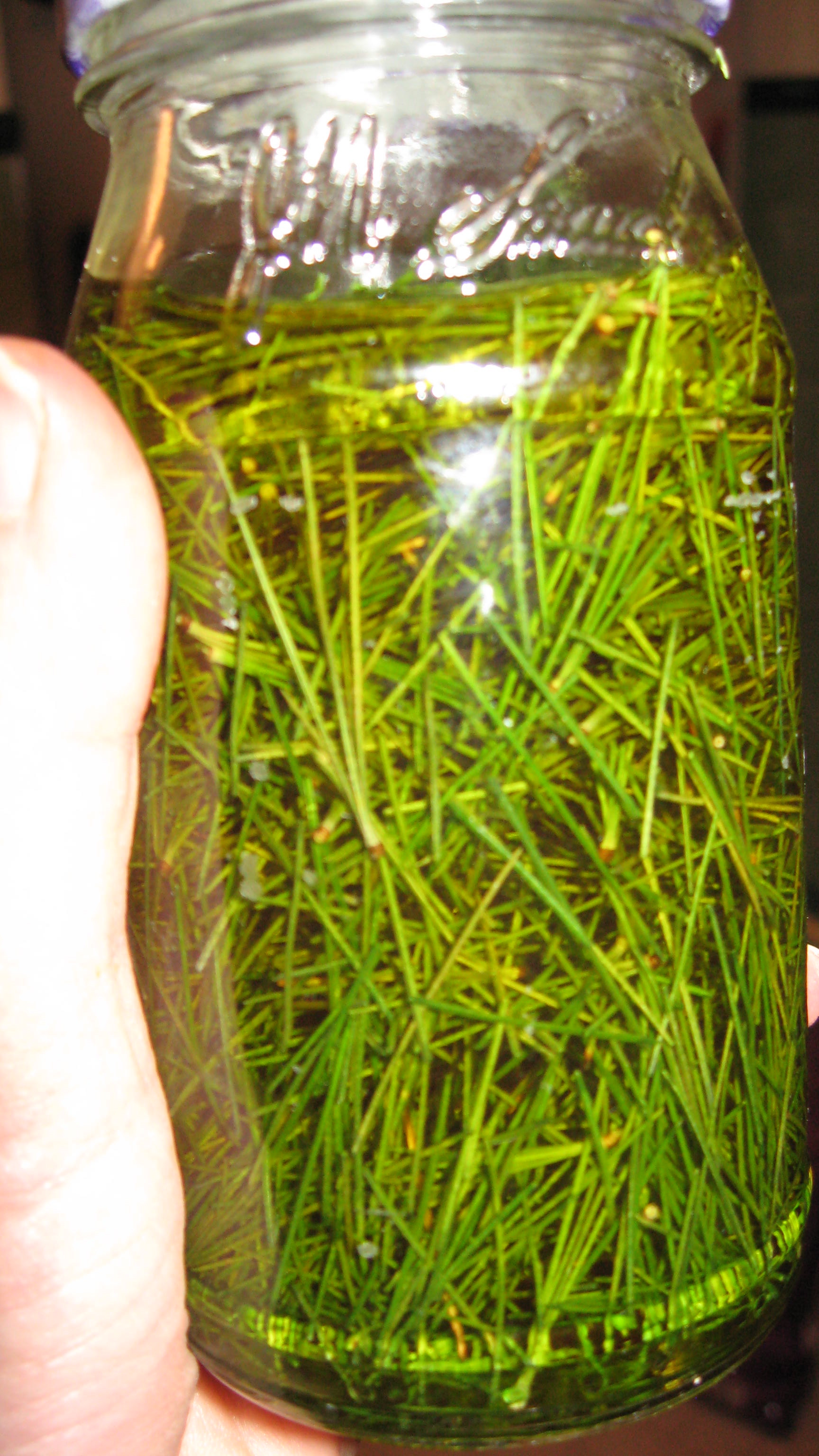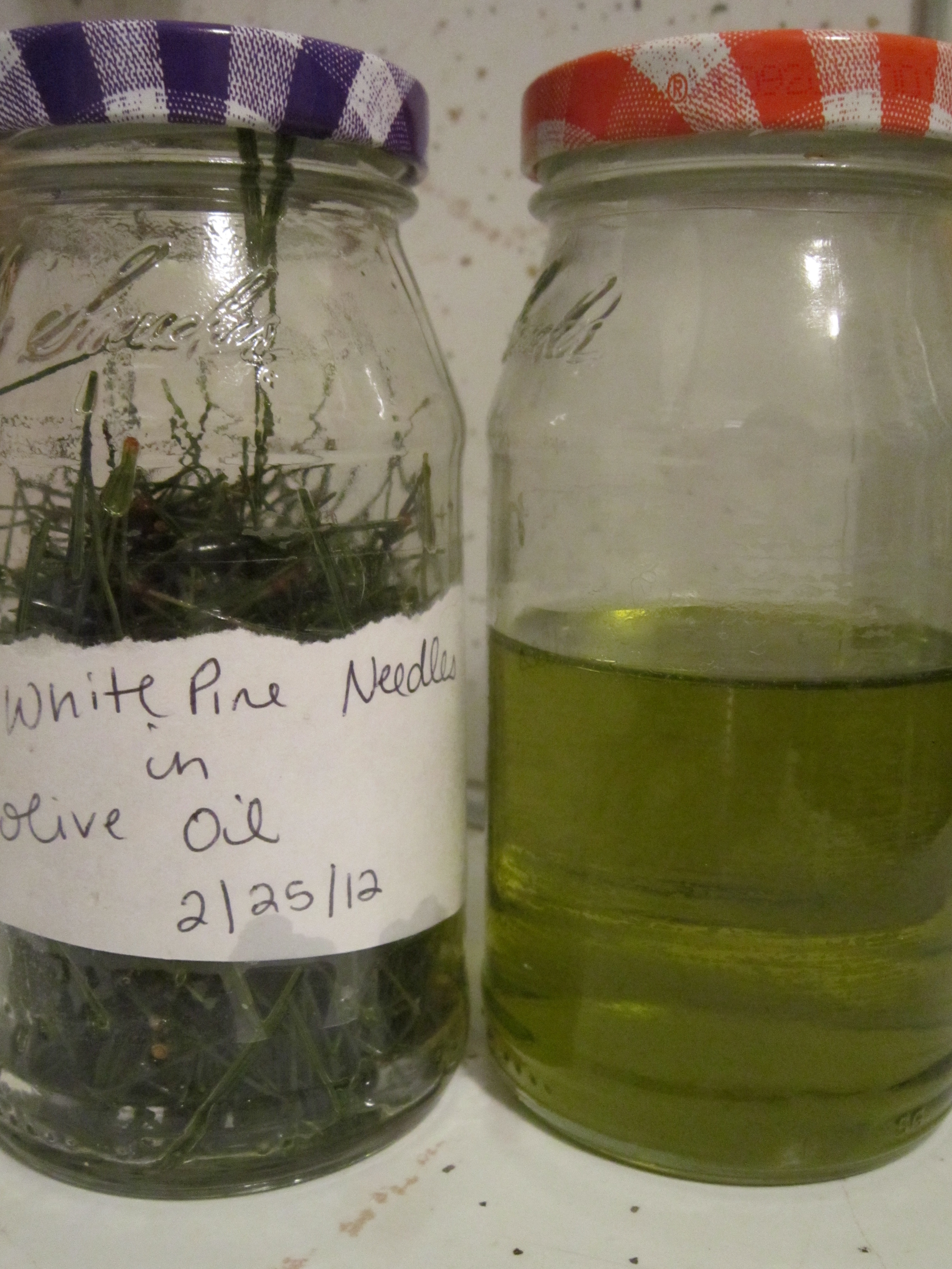 What’s another use for the pine needles?  Infuse them in olive oil!  The oil can then be used as a relaxing massage oil or as a chest rub to help with respiratory issues.