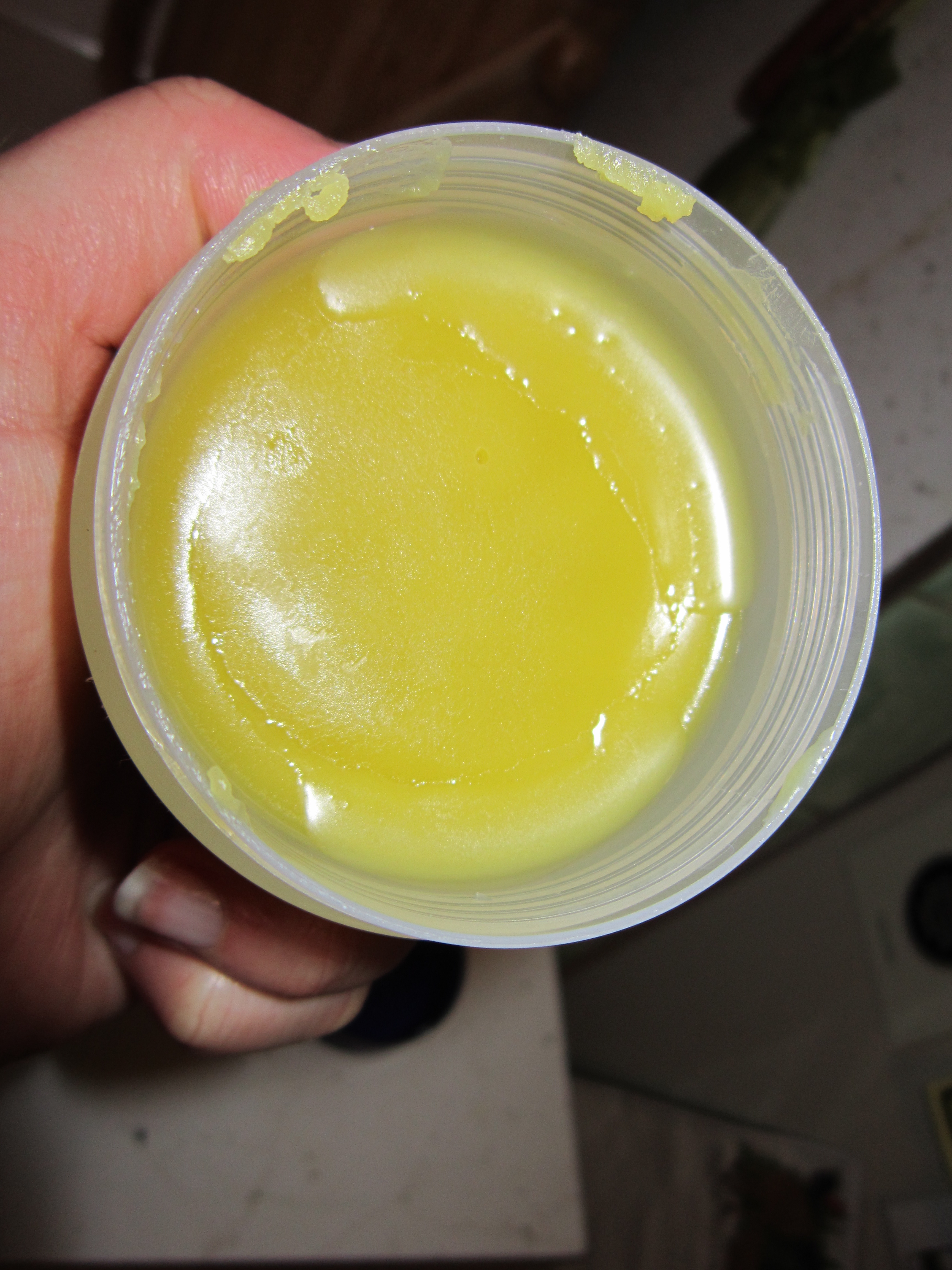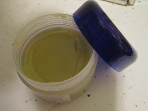 When the mixture is consistent, pour it into a reused container and let sit to become a salve!  Use and enjoy knowing exactly what went into your product!