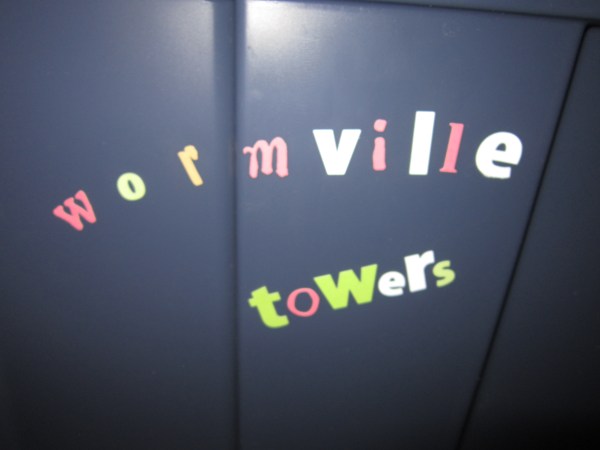I don’t have much experience with worm bins, but I’ve seen a fair number of the commercially available ones and have also explored some that are set up as singular bins. I decided to try a mix. I call this worm home, Wormville Towers, because it is much more fun to live with worms that have a named community.