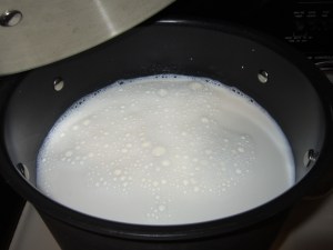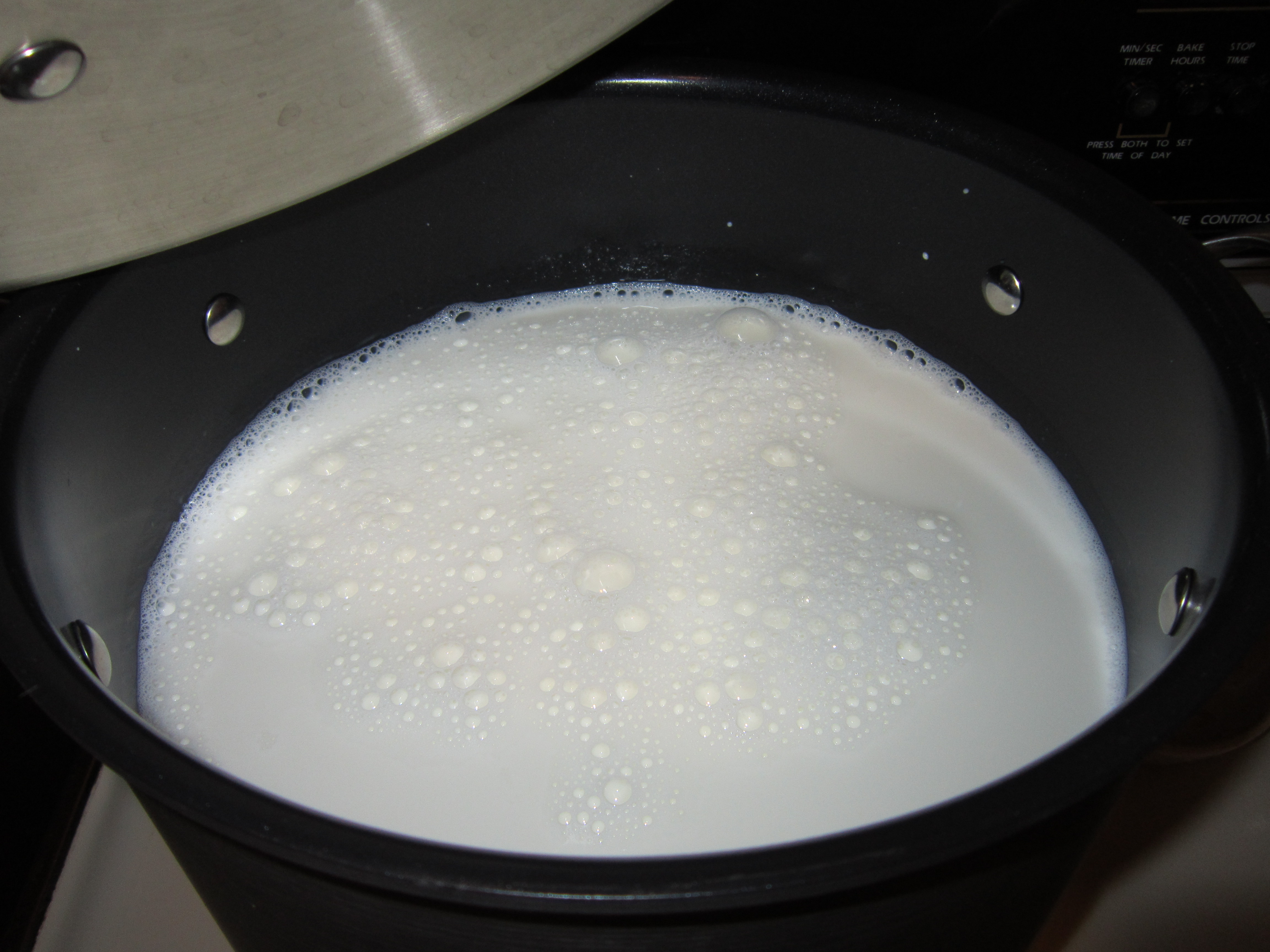 Combine the ingredients and heat the milk slowly on the stove, stirring periodically, and work the milk’s temperature up toward 180*-190*. This should happen slowly — it might take anywhere from 30 minutes to an hour.
