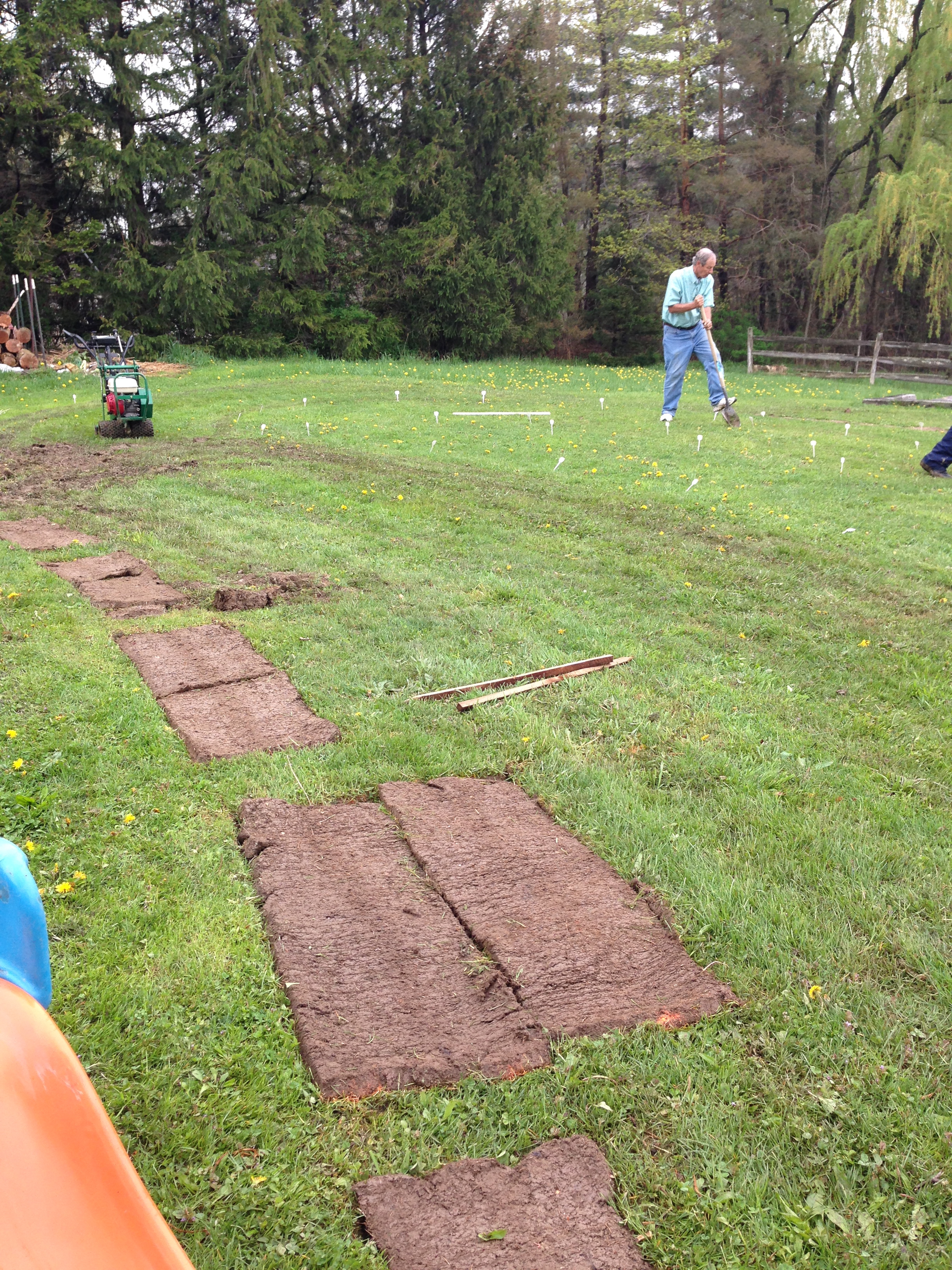 - In order to turn our lawn into garden beds and orchards, we cut paths by hand with shovels, and rented a sod-cutter to establish the keyhole beds and to prep the swales and sun garden