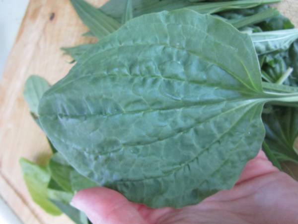 And, another trick for stings if you’re away from home – grab a leaf of the common weed Plantain (Plantago major), crush it up in your hands (or even chew it!) to release the juices and stick this wad of goopy plant material right on your sting.  It will help to relieve the sting quickly and also helps to draw out toxins.  In fact, it’s a good plant to know for any bug bites you get while outdoors (you should see me while camping, I have tend to have little wads of plantain all over!).