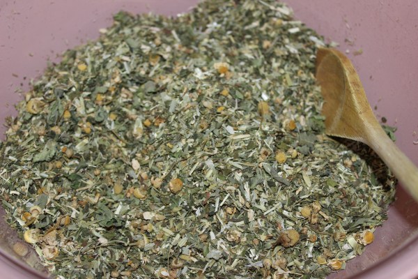 Next, I boil water and distract myself with teeth brushing or other before-bed chores.  When the water is ready, I pour it over the herb, seal the jar, and am off to bed.  The minimum time to leave an infusion is 4 hours, but it is fine to leave it overnight.